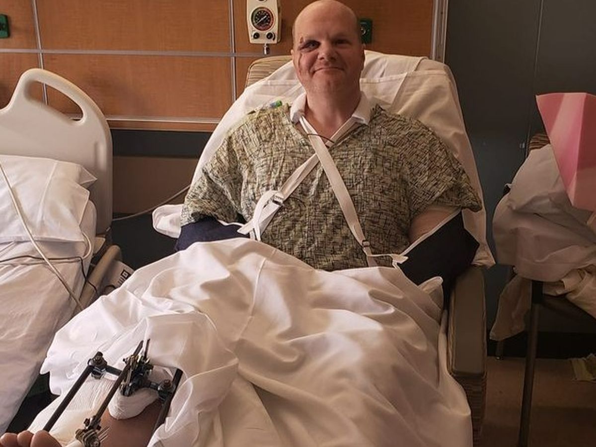 As you can imagine, he has extensive injuries. Both arms are broken and dislocated, his right leg from below his knee to his ankle is shattered, a broken pelvis, broken vertebrae, and a broken cheekbone! He's had 2 surgeries so far (with many more to come) on his leg and arms and a screw put in place to fix his pelvis. It will be an incredibly long and difficult road to recovery.