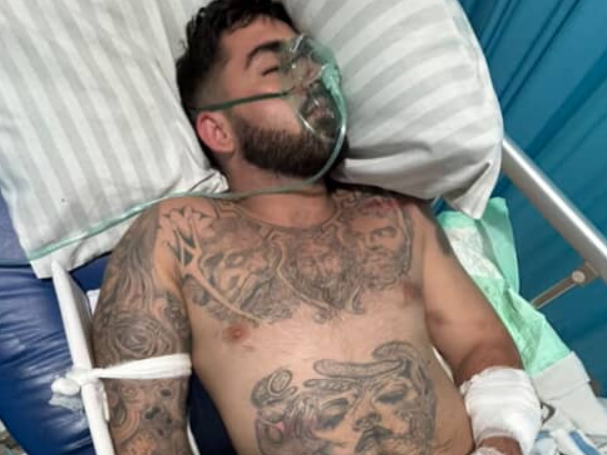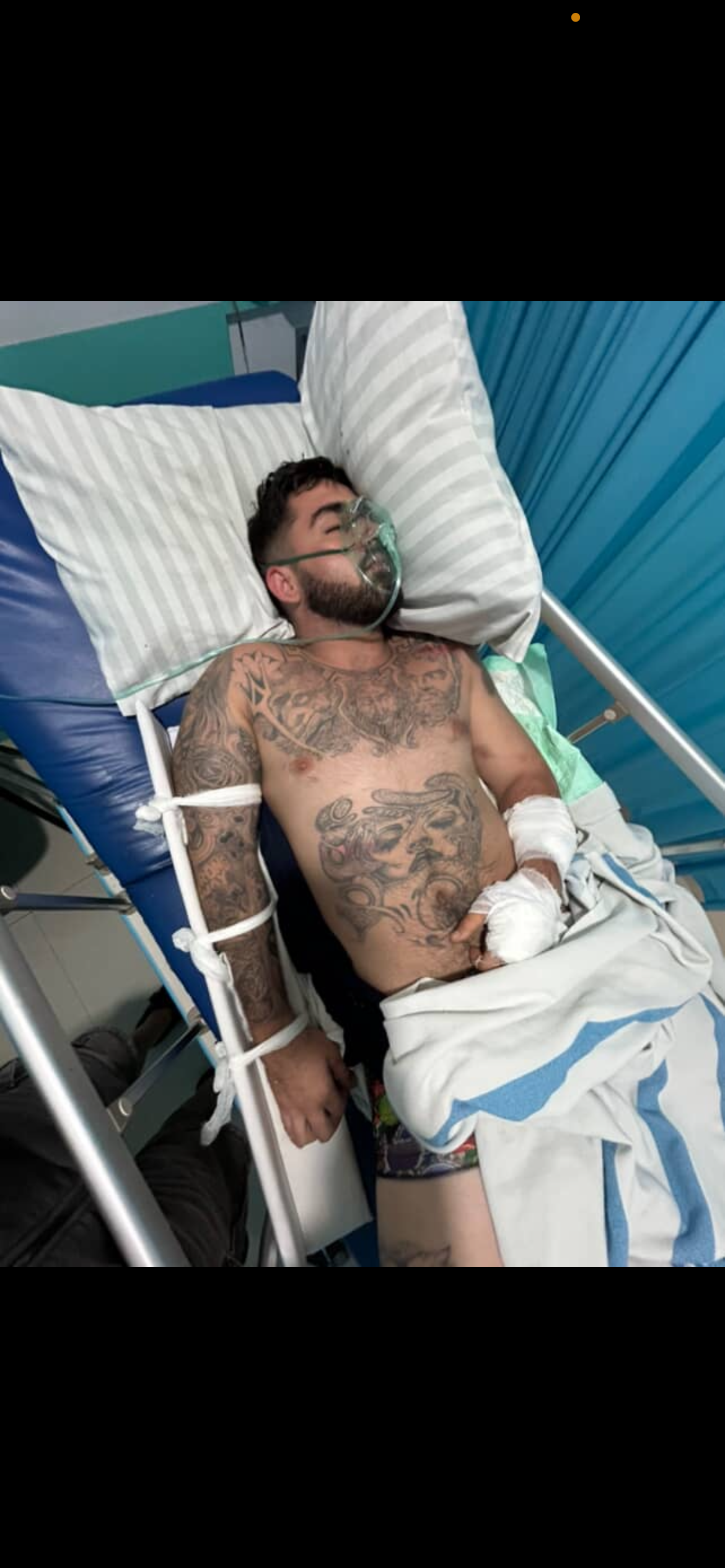 He is currently heavily sedated, with multiple broken bones, including life-threatening internal injuries.