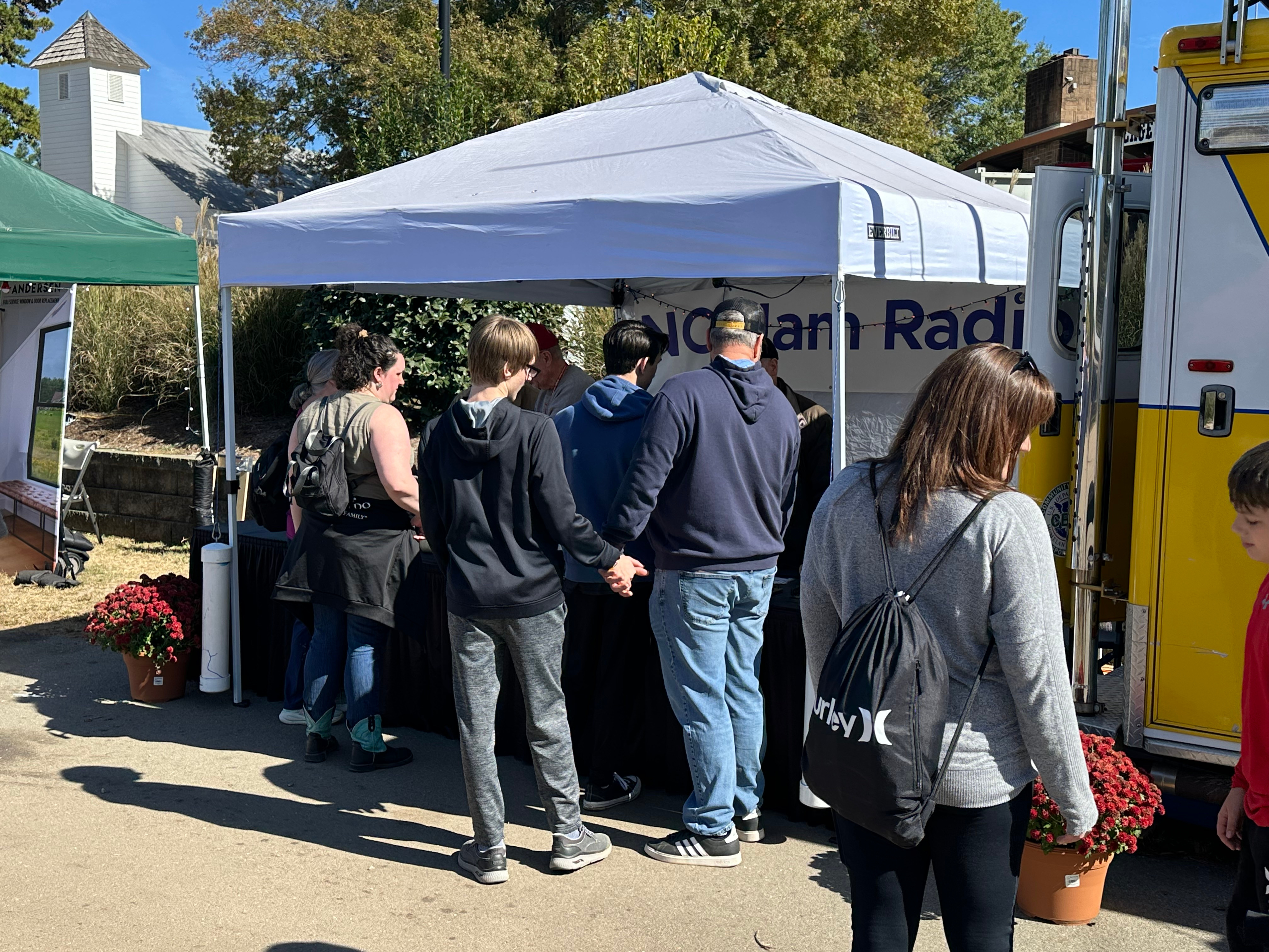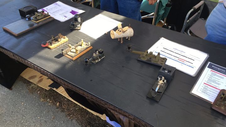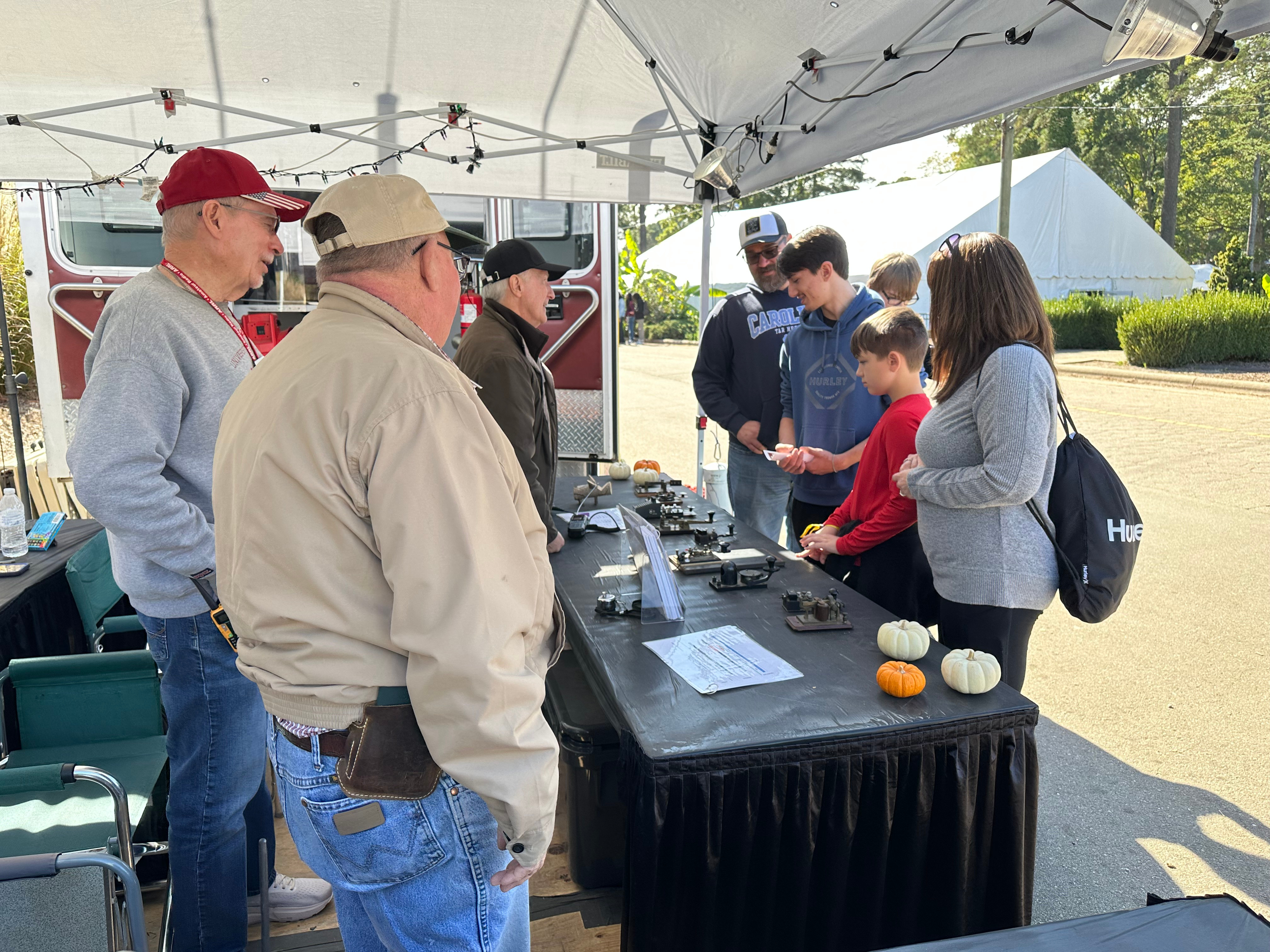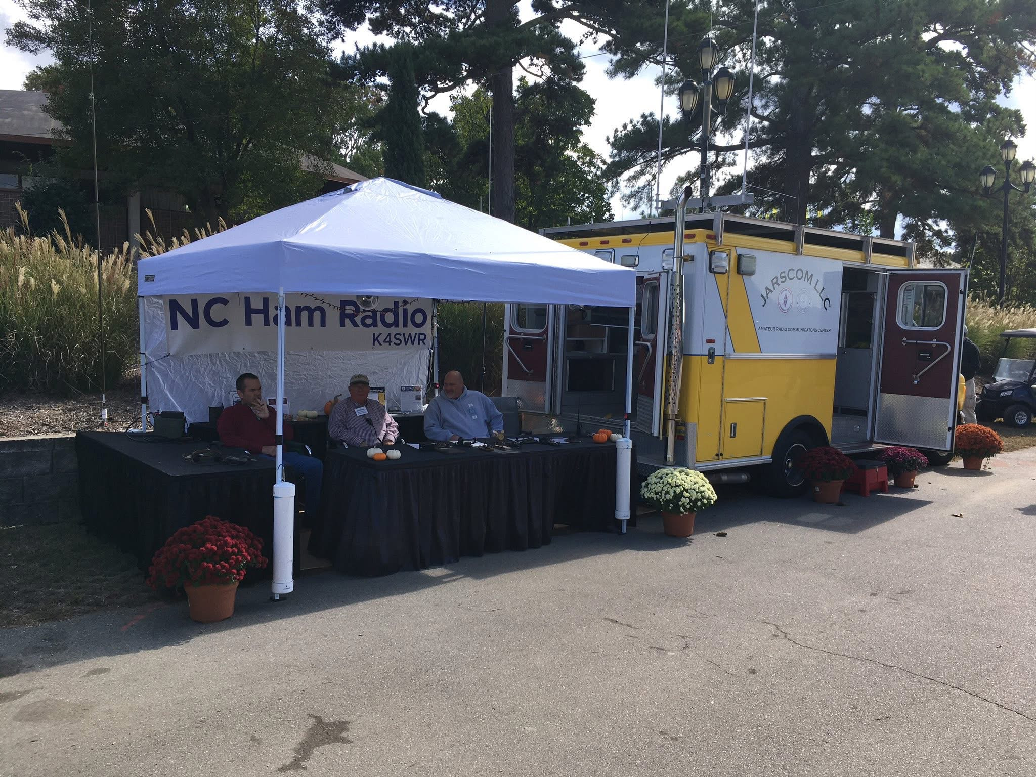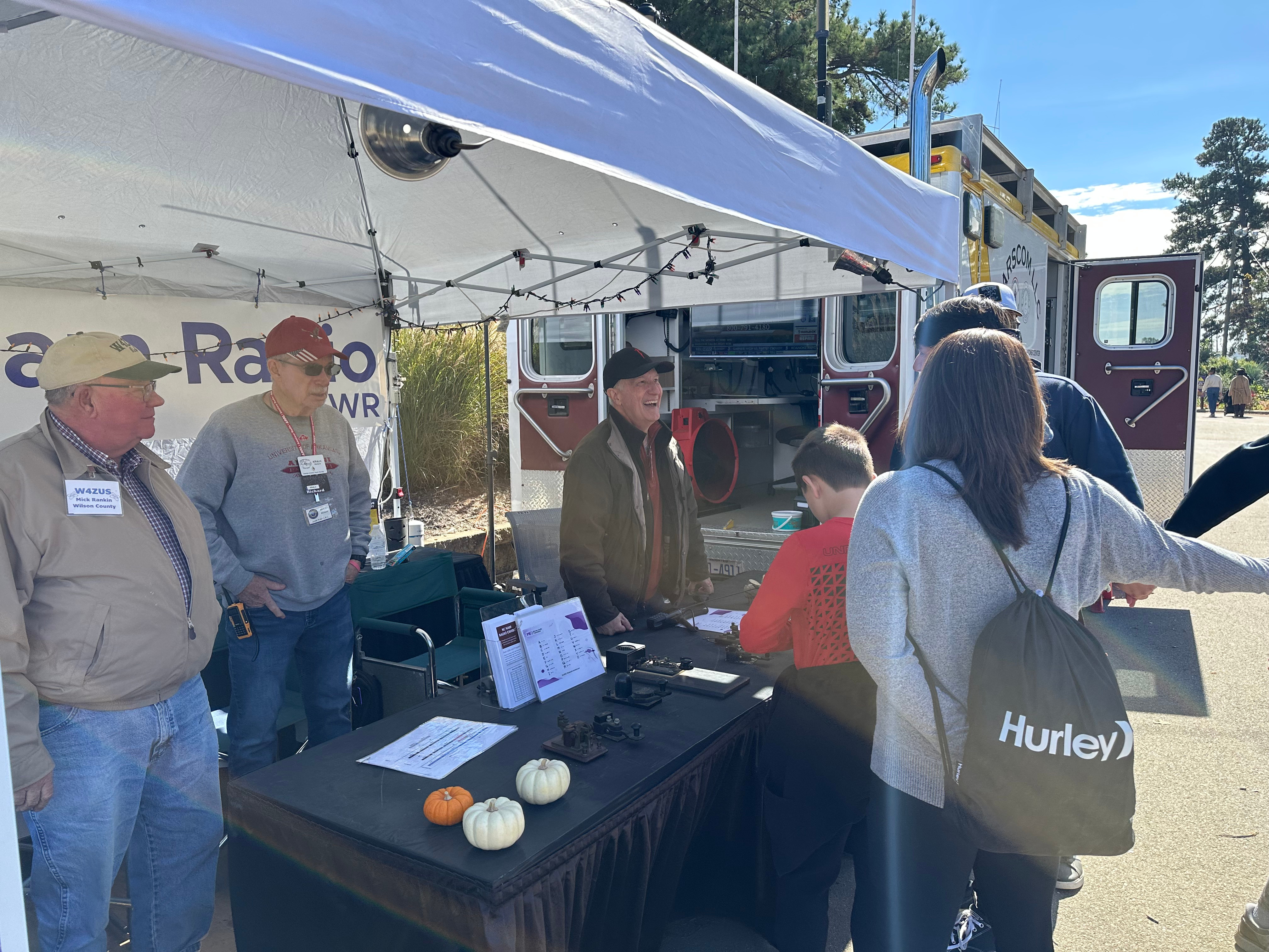 The exhibit consists of an Amateur Radio Command Center provided graciously by the Johnston Amateur Radio Society (JARS). In addition, there is a 12x10 tent where we share information about Amateur Radio, show kids how to send their names in Morse Code, and demonstrate Amateur Radio through our "Go Kit" in the tent. We also give "tours" of JARSCom where there are many radios and antennas, and when possible we call nets from the truck.