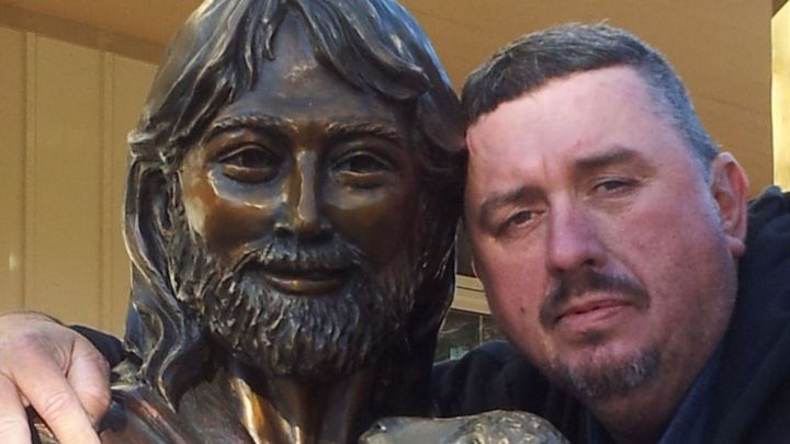 The picture above of Brent hugging a statue of Jesus says it all!!!