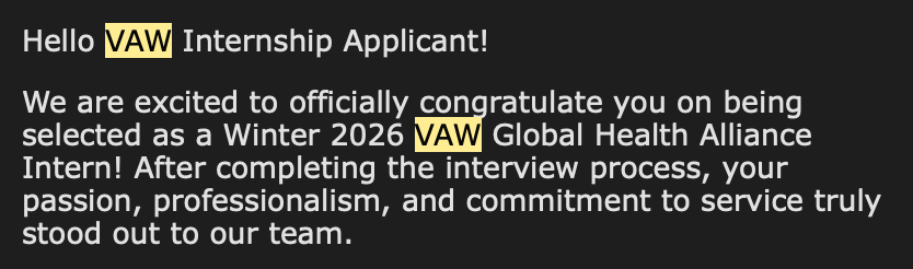This upcoming Fall semester, I have been selected to participate in an international medical internship with VAW Global Outreach Medical in Panama. This experience will provide valuable clinical exposure in critical areas including Patient Intake, Vital Signs Assessment, Physician Shadowing, and Pharmacy operations; all essential components for medical school admission requirements.