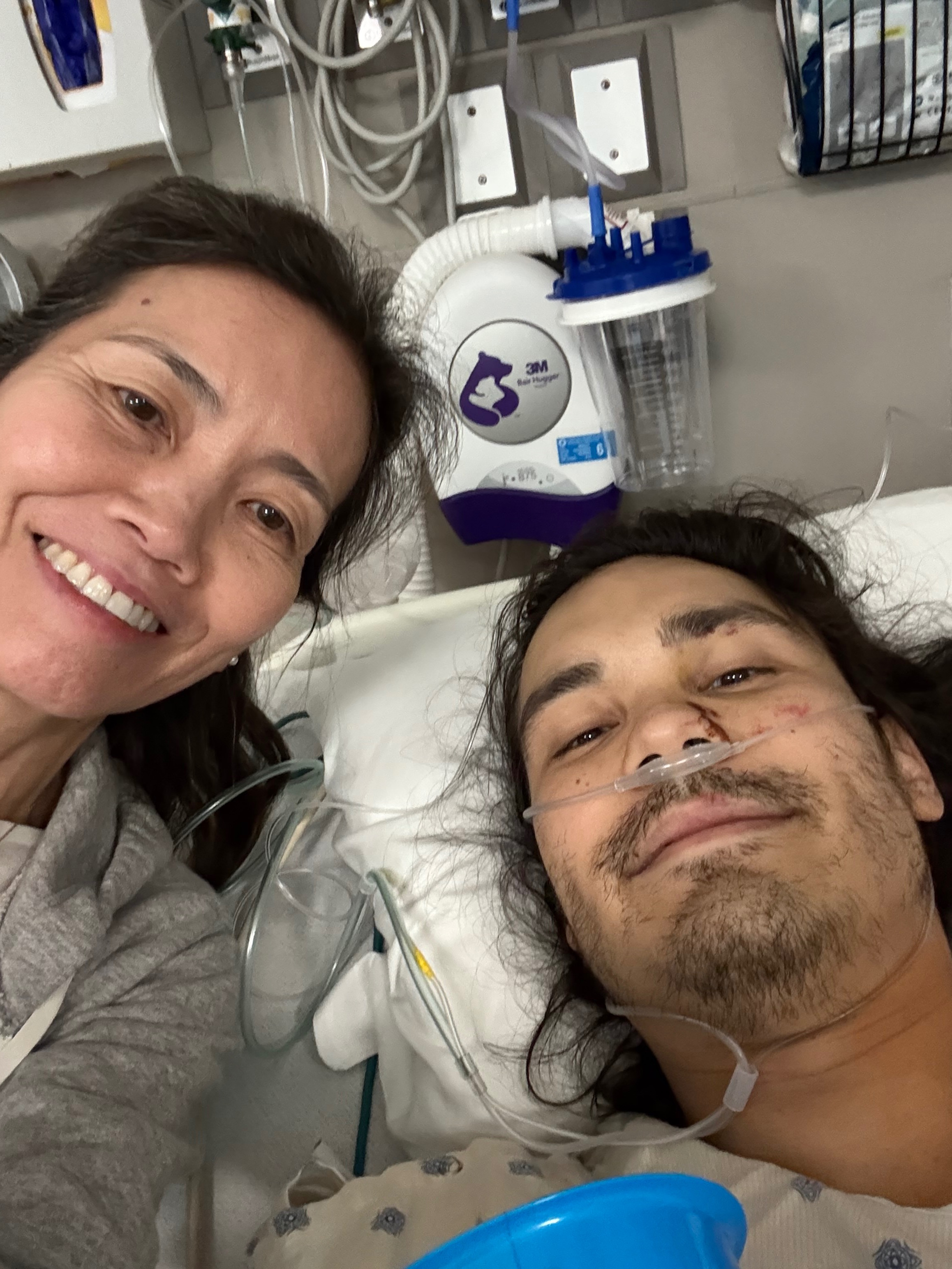 In the hospital during recovery — a quiet moment of connection and care.