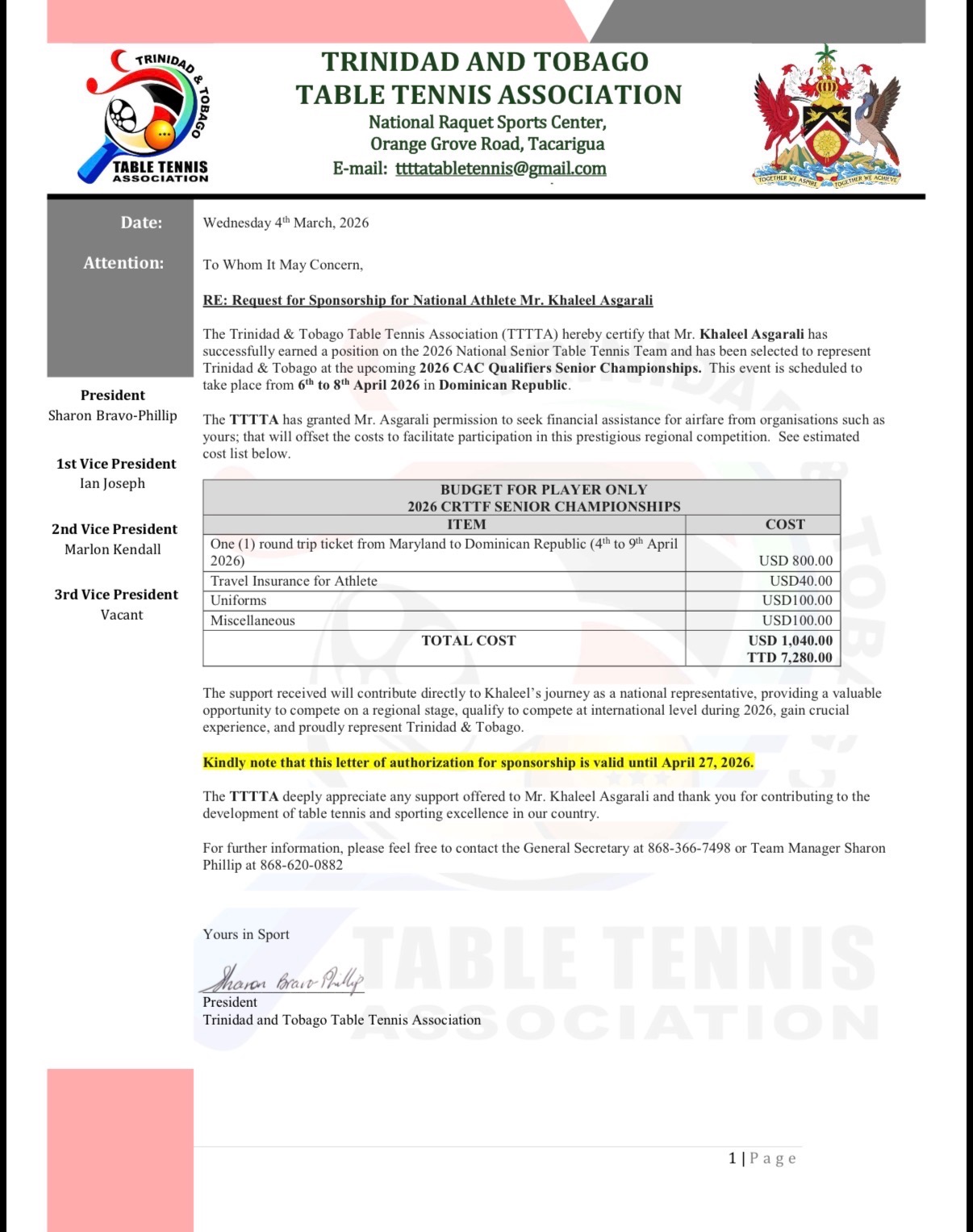 I have been selected to represent Trinidad and Tobago in the upcoming CAC Qualifier Tournament in the Dominican Republic, taking place April 4-8. This is a tremendous honor and a vital step in my athletic journey. Unfortunately, the Ministry of Sports is unable to provide funding, so all athletes are required to self-fund their participation. My expenses include airfare, travel insurance, uniforms, and tournament fees, which add up quickly and make it challenging to attend without support.