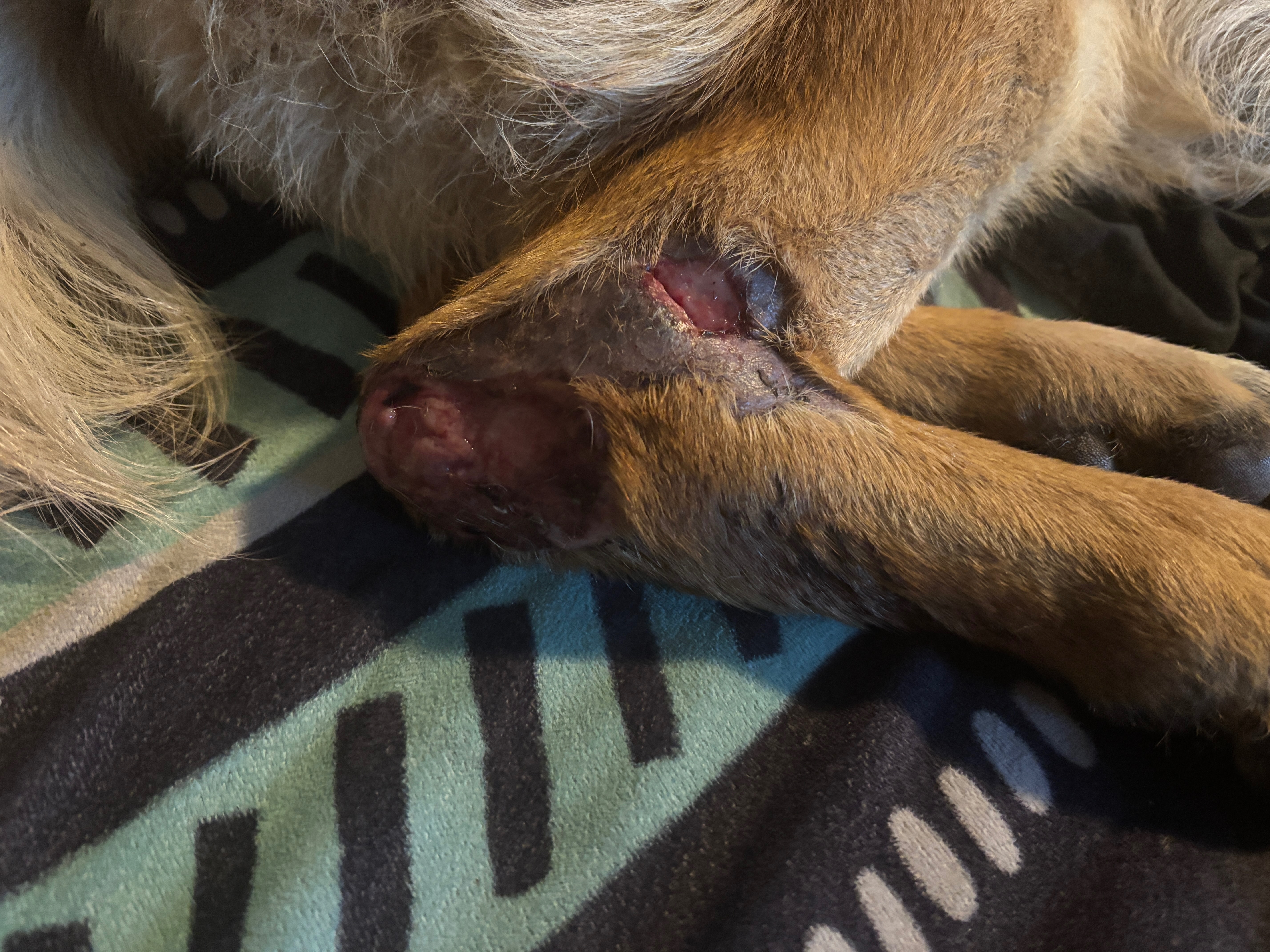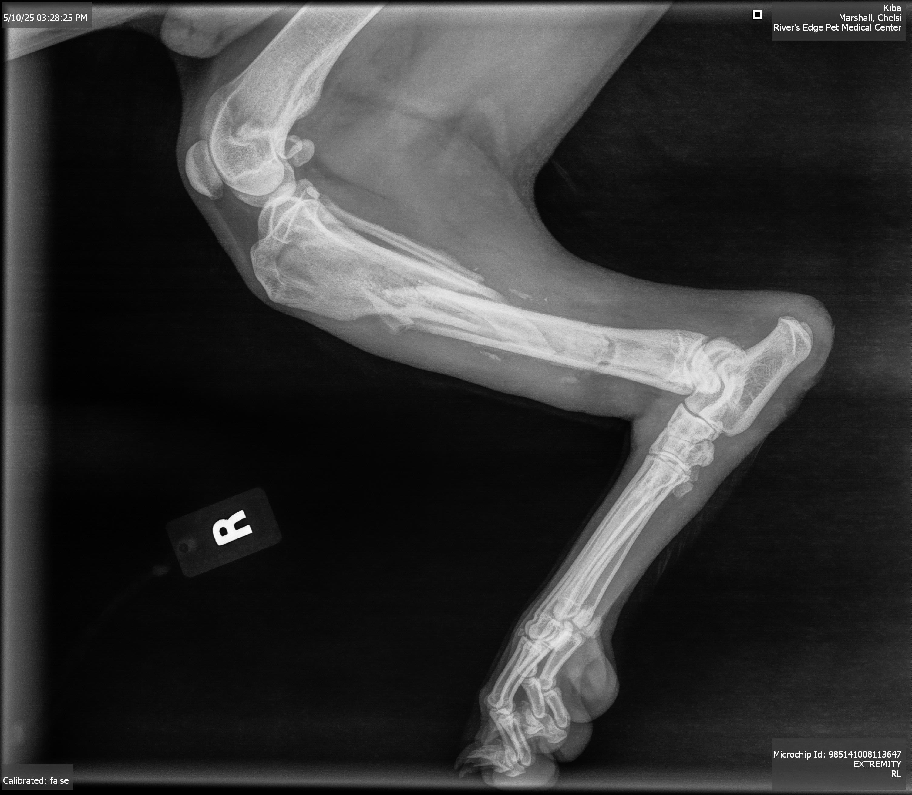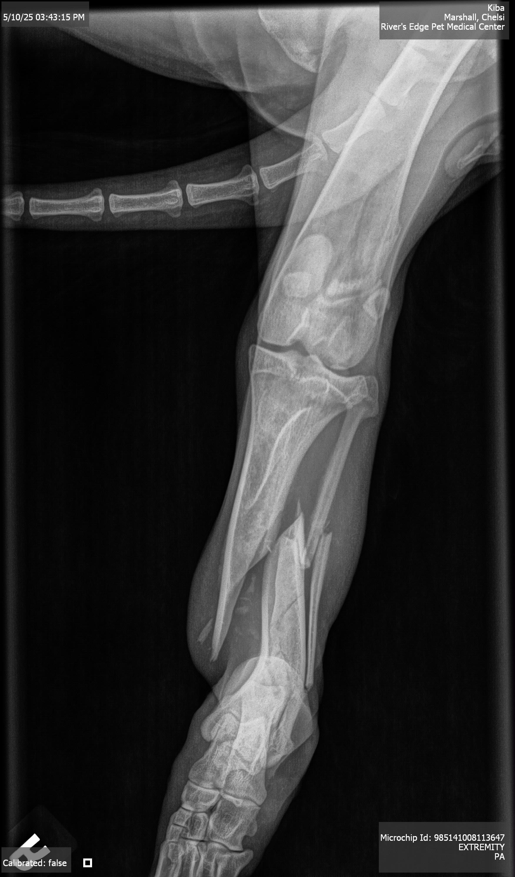 Hi everyone, my name is Chelsi and a lot of you saw our story about our dog Kiba who was missing for almost 2 weeks. While our boy was gone, he got hurt and has multi bone spiral fracture to his tibia and fibula and is going to need surgery to fix his leg. This is going to be an expensive surgery and we could use any help that we can get to help Kiba get back to his happy, healthy self. I understand that these are trying times for everyone, but anything helps. His consultation for surgery is with OSU vet on Wednesday and I will post all of their findings and itemized list of what they are going to do for him and cost when I have it. I have added the pictures of his x rays that our vet took and pictures of his wounded leg before and after going into the vet.