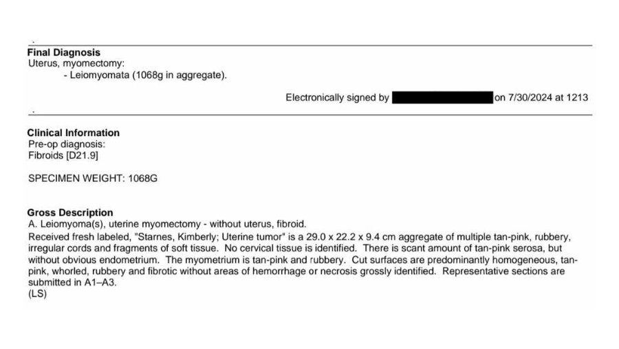 Kimber had successful surgery to remove an extremely large uterine fibroid on July 25th.