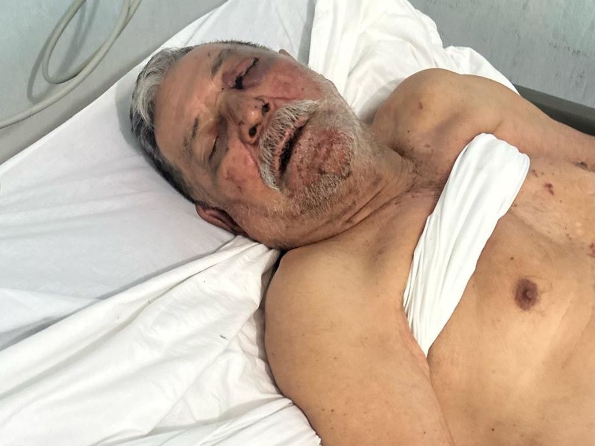 Su hijo lo encontró cuando llegó a casa para ver cómo estaba, estaba inconsciente y ahogándose en su propia sangre. Tuvimos suerte de que lo encontraran cuando estaba.