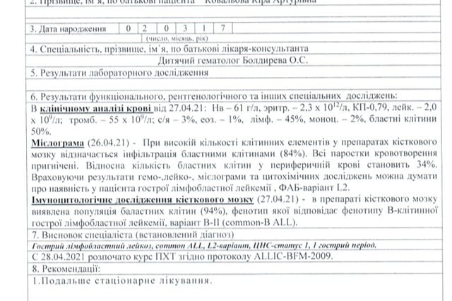 Terrible news about Kira's illness arrived unexpectedly. It started with a simple fever that refused to go away. After numerous tests she was diagnosed with Acute Lymphoblastic Leukemia. She is my niece, 4 years old girl that still has a whole life ahead of her only if we start treatment now. Kira needs multiple chemo treatments. We are doing everything in our power to cover high cost of medicine and treatments. I hope that with your help, friends, we can help a young family to save her life.