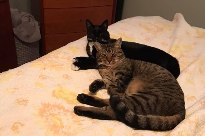 This morning on March 16th, their beautiful, sweet kitties were attacked in Santa Rosa. Carson, the brown striped little guy was shot with a BB gun in his back leaving him paralyzed. Frenchie, the black and white tuxedo kitty had a huge gouge in his foot that was so deep it showed the bone.