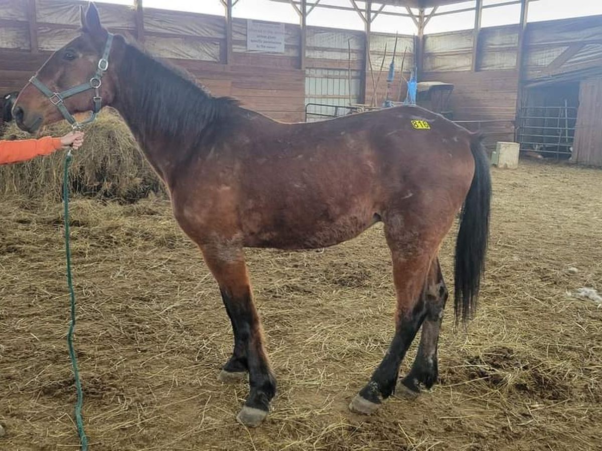 This 15.2 hand boy is in good physical condition for his age. He was scared but well behaved, evidence that he’s been beaten; he needs decompression , learning that humans can be kind partners. He does ride well with voice commands and in just a few minutes began to soften. He’s sound! He has a touch of arthritis as expected but with kindness and a joint supplement would make a very sweet trail horse!