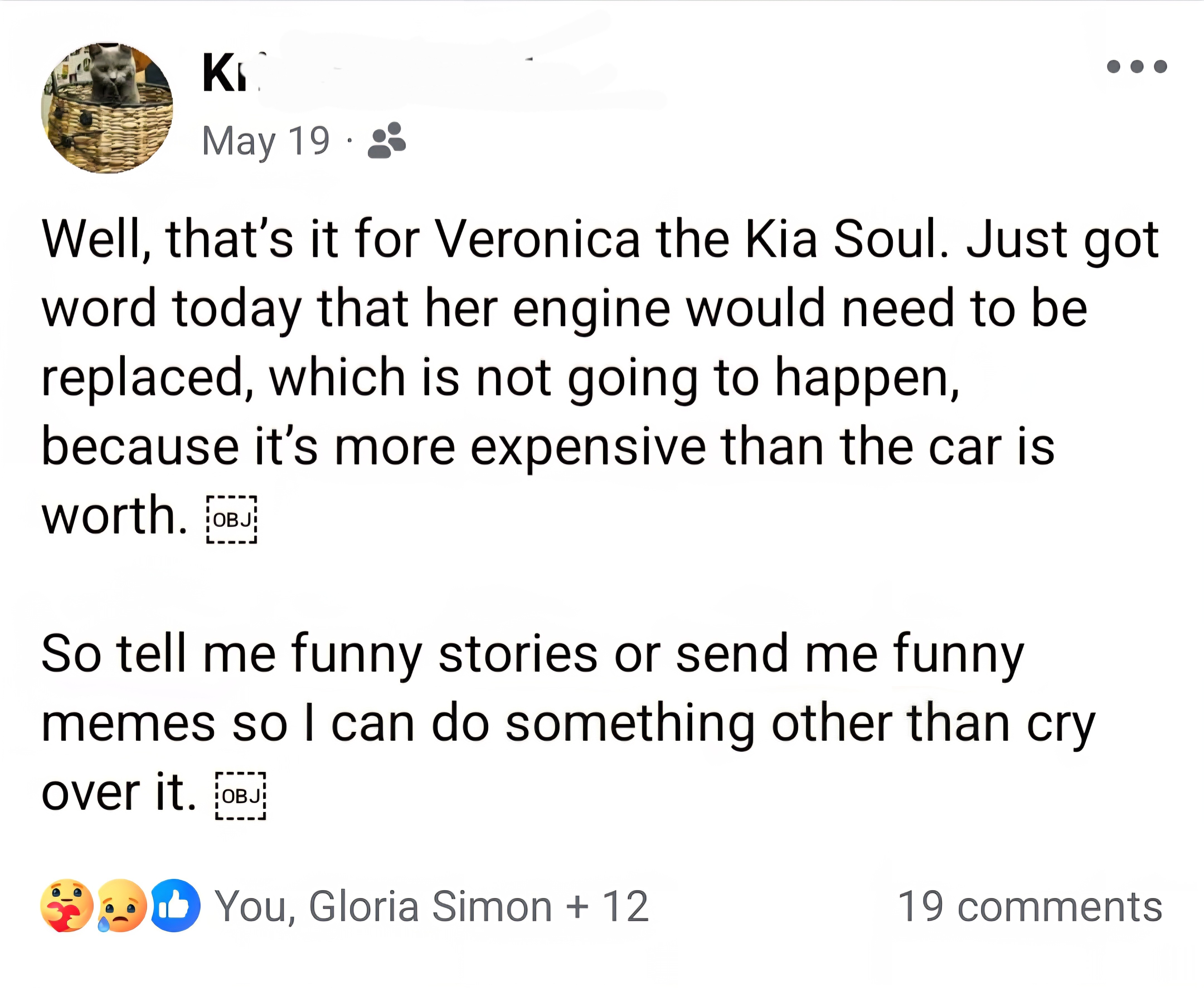 Recently our dear friend Kristin unexpectedly experienced her car's engine going out. She is the glue thay holds one of our local TNR clinics together. She works hard and volunteers even harder to help our communities in TNR efforts.