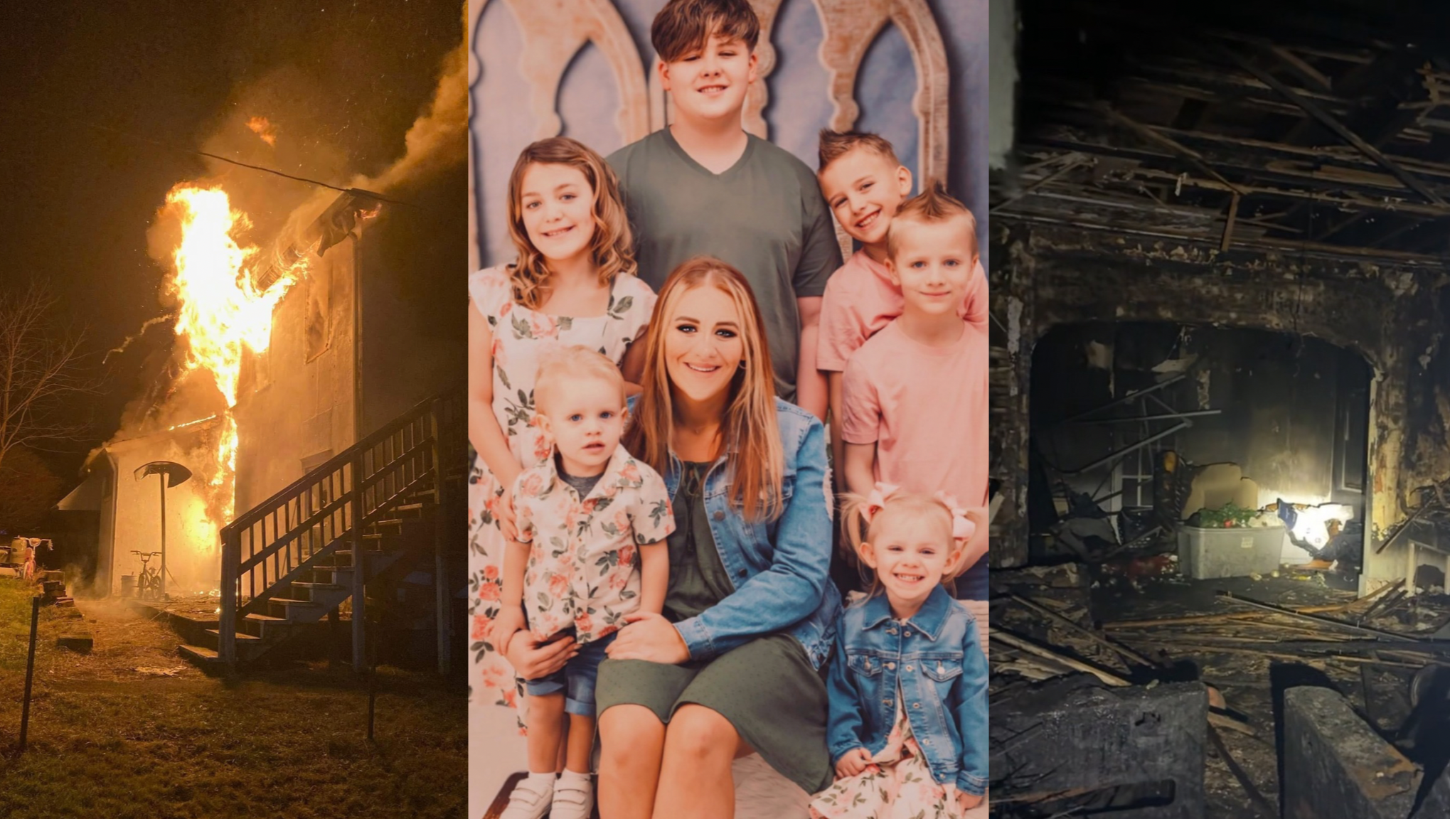 Hello all, my name is Jessica, I’m Kristys sister! Tonight, my sister got the devastating phone call that her house was on fire. We are looking for donations for my sister and her six children. Her house was deliberately set on fire tonight and they lost every single thing they own! We are extremely thankful they were away for the holiday. The house is a total loss.