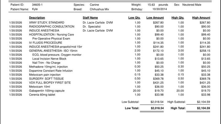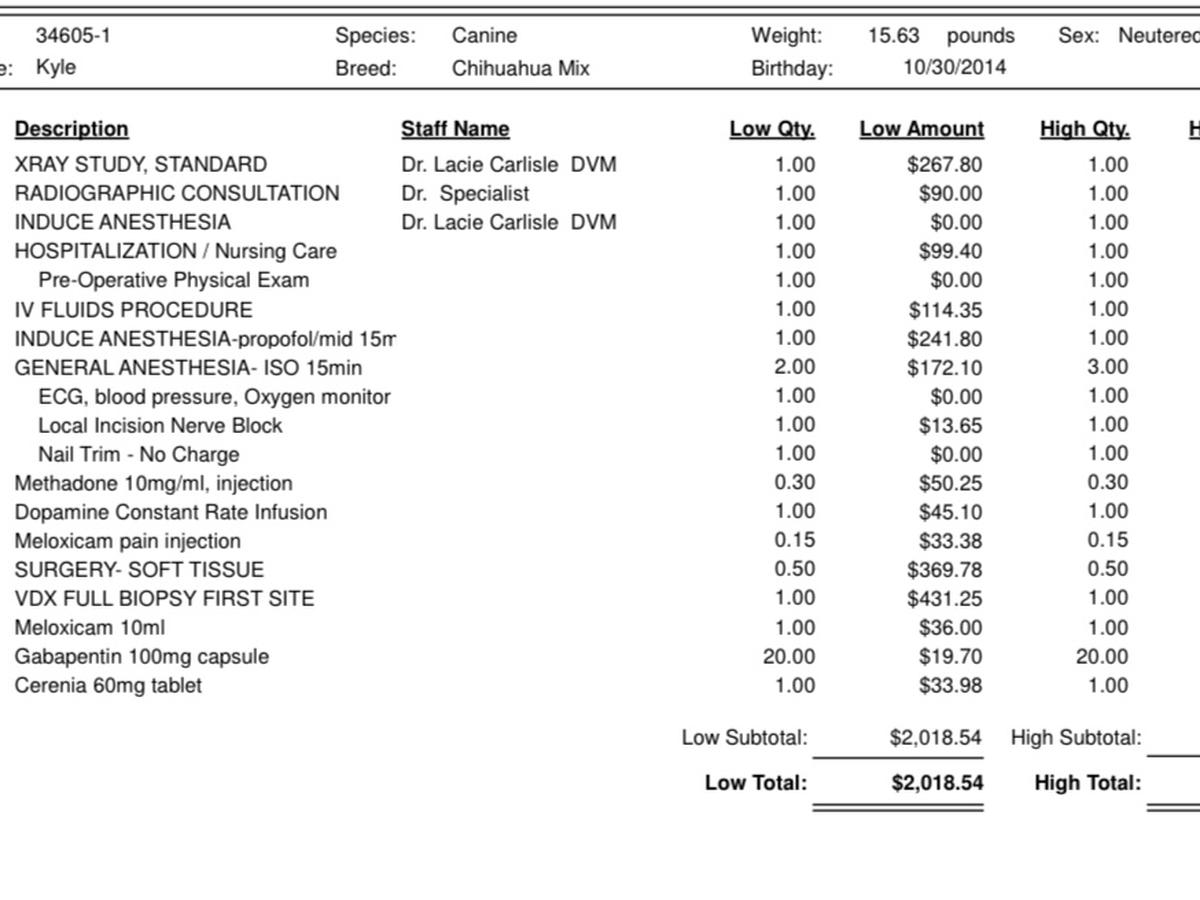 Kyle also has a severe gum infection. Teeth removal will be another surgery and additional expense after this one so we need help covering his immediate upcoming medical expenses for the tumor surgery (see photo). Anything helps and is deeply appreciated!!
