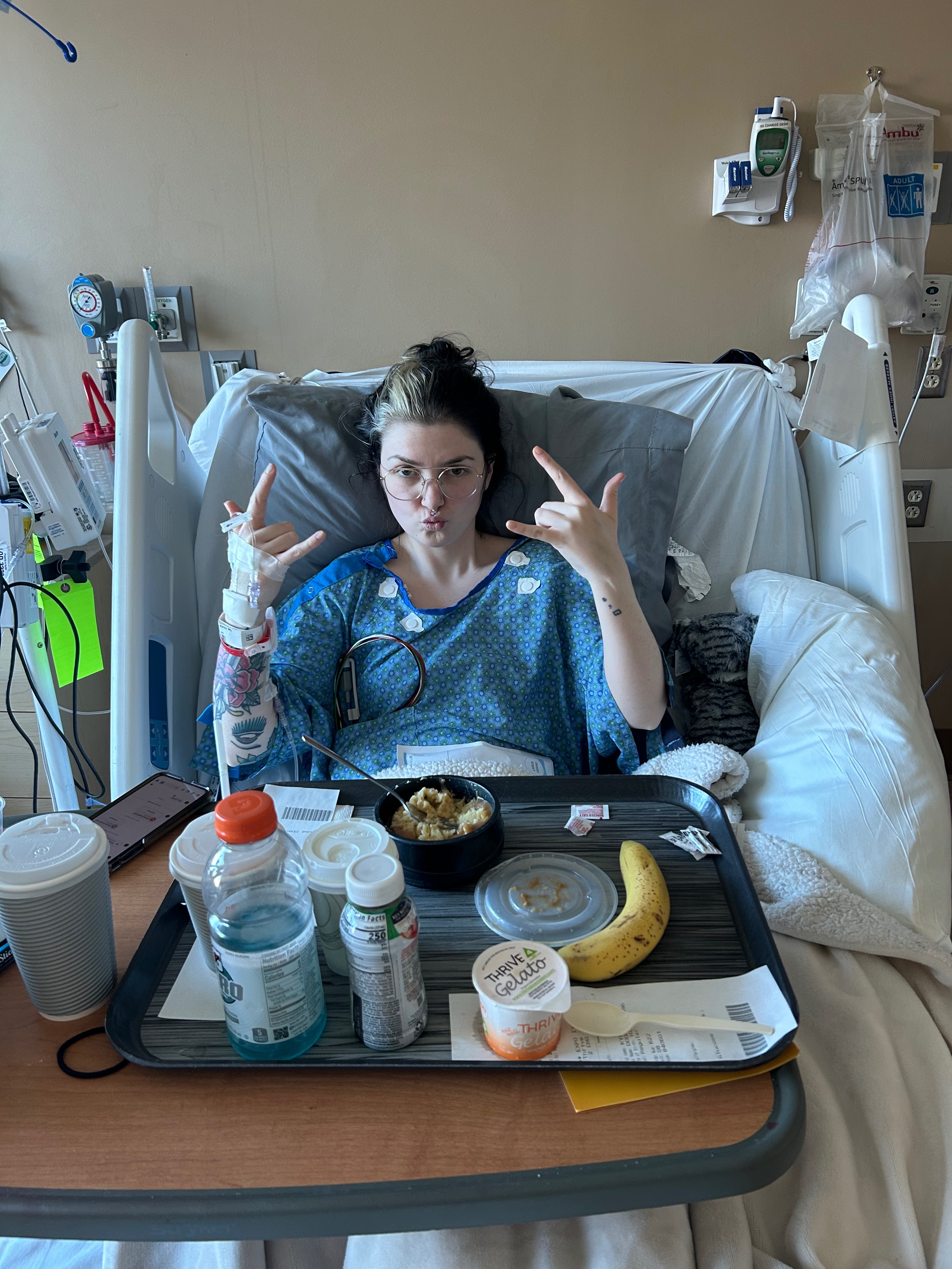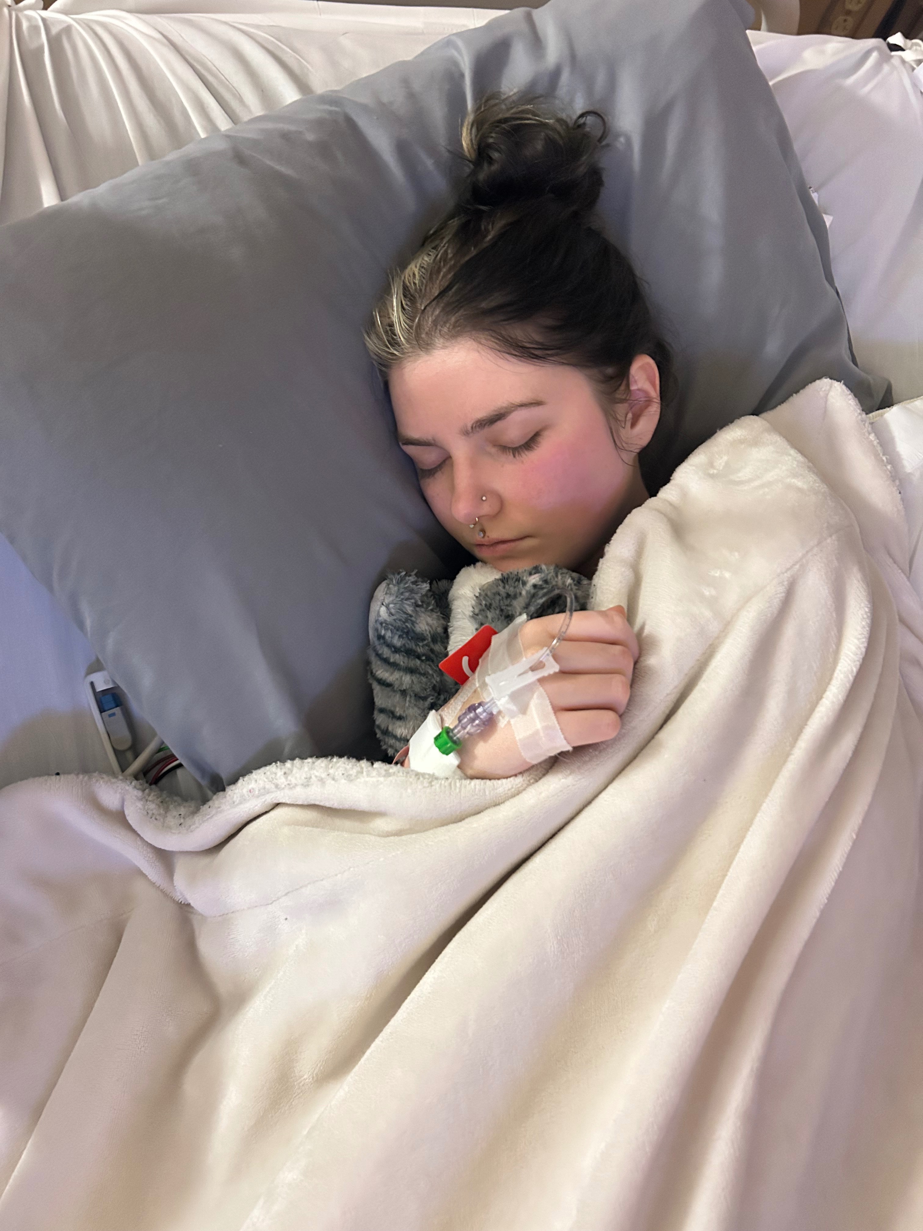 After 8 days in the hospital, Kylee came home with me to recover—partly so her sweet kitty Vexy wouldn’t try to knead biscuits on her belly, but mostly because this mama bear needed her close.