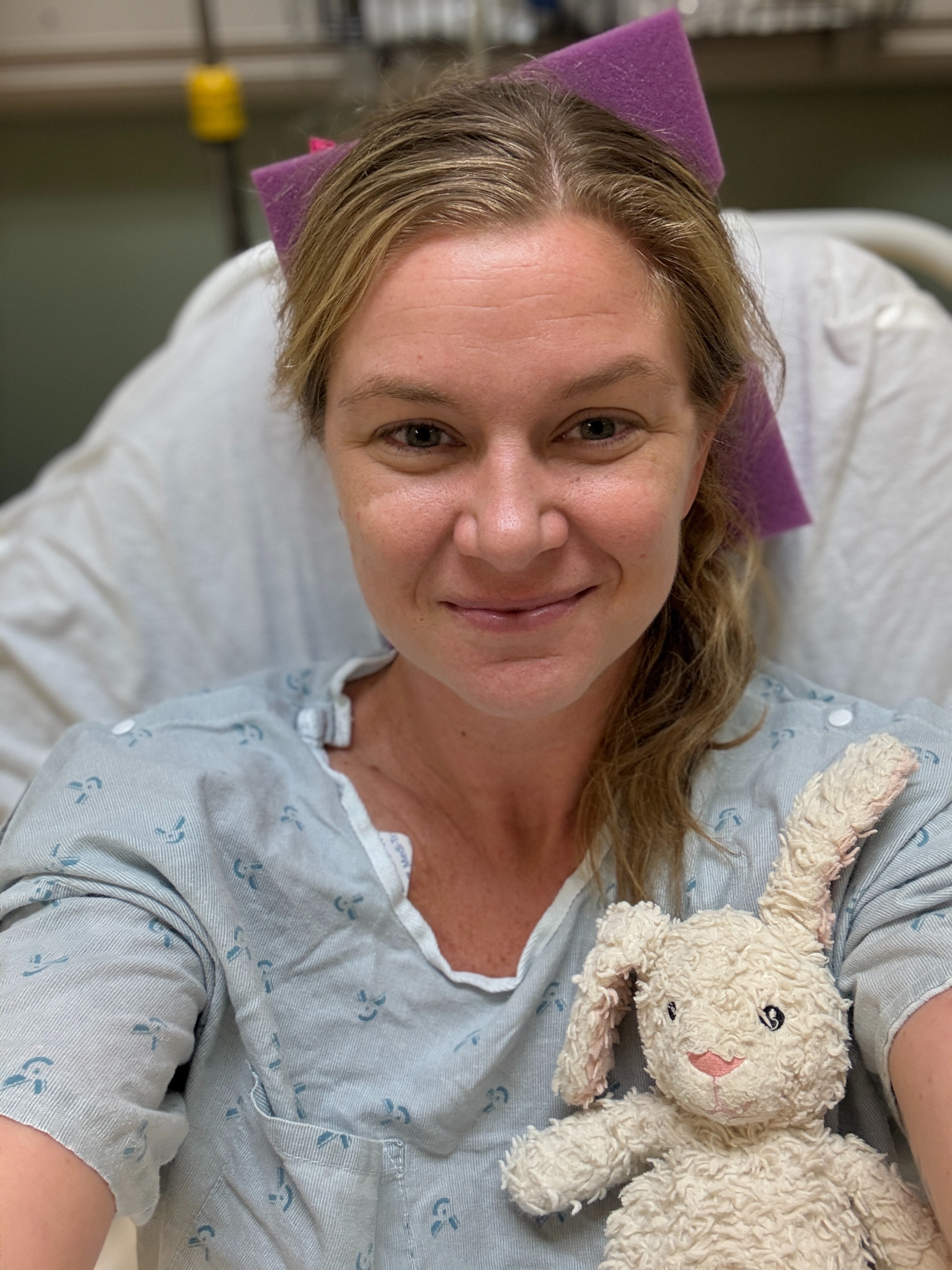 Post-surgery, her lymph nodes and scans have come back negative so far, which is a gift; but clear scans cannot detect microcells, and recurrence risk remains high. This is why Kyra now begins modern immunotherapy every 3 weeks for the next year.