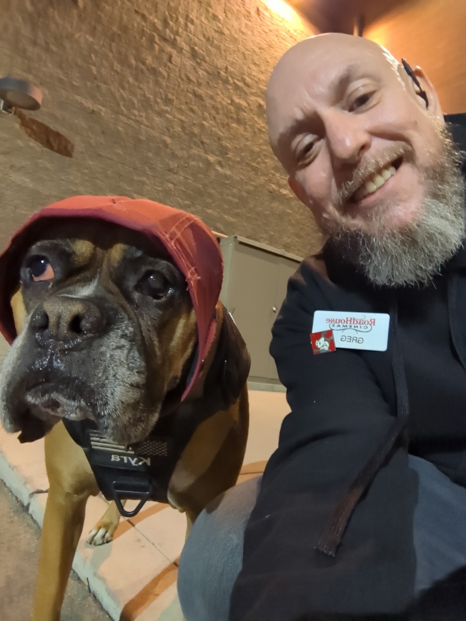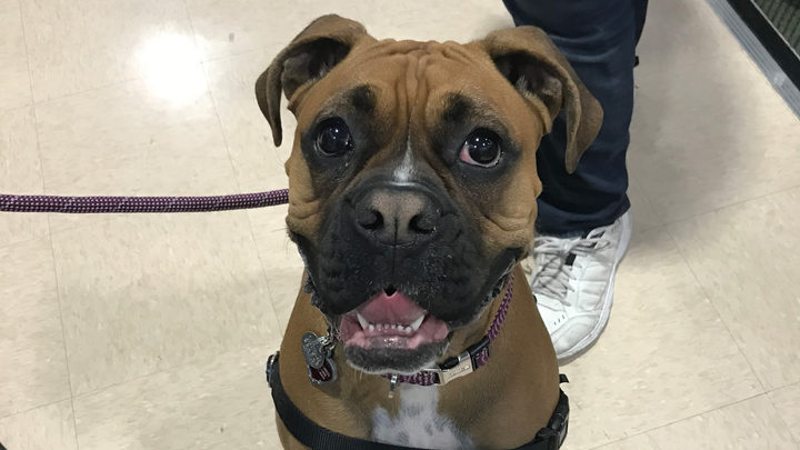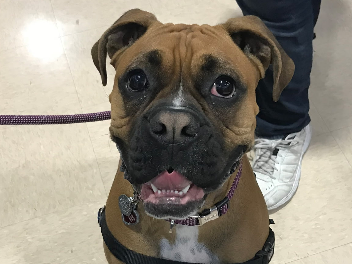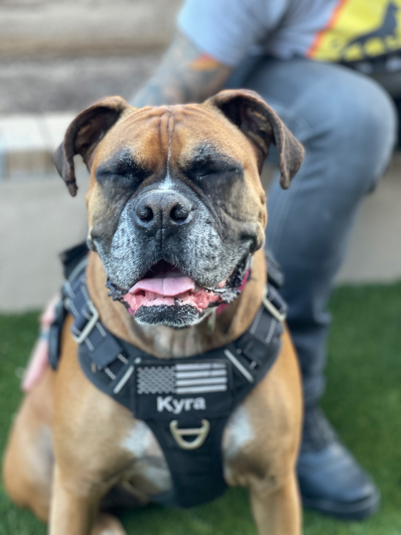 Hello, I would like you all to meet Kyra. She came to Greg’s family at four weeks old. They fed her from a bottle, taught her to eat solids and nurtured her into a funny energetic Boxer. During this time Greg had multiple seizures a day, unable to work and homebound because he could not drive and having a seizure in a store was traumatic for him and those around him. This is relevant because at 6 months old she started to act what we jokingly called “broken” but all the behaviors were to let Greg know he was going to have a seizure. She will lay on top of Greg to prevent him from standing. She will ram Nikki (Greg’s wife) with her nose to alert her to his seizure. She will get help if he has an episode. She will herd him to a chair or to the bed. After she alerts someone, he has about an hour to get to safety or call for help. She gave Greg a new life. He could leave the house, he could even get a job, knowing she would alert him so he could get somewhere safe. She is a blessing to us and has worked at keeping Greg safe for the last 8 and a half years.