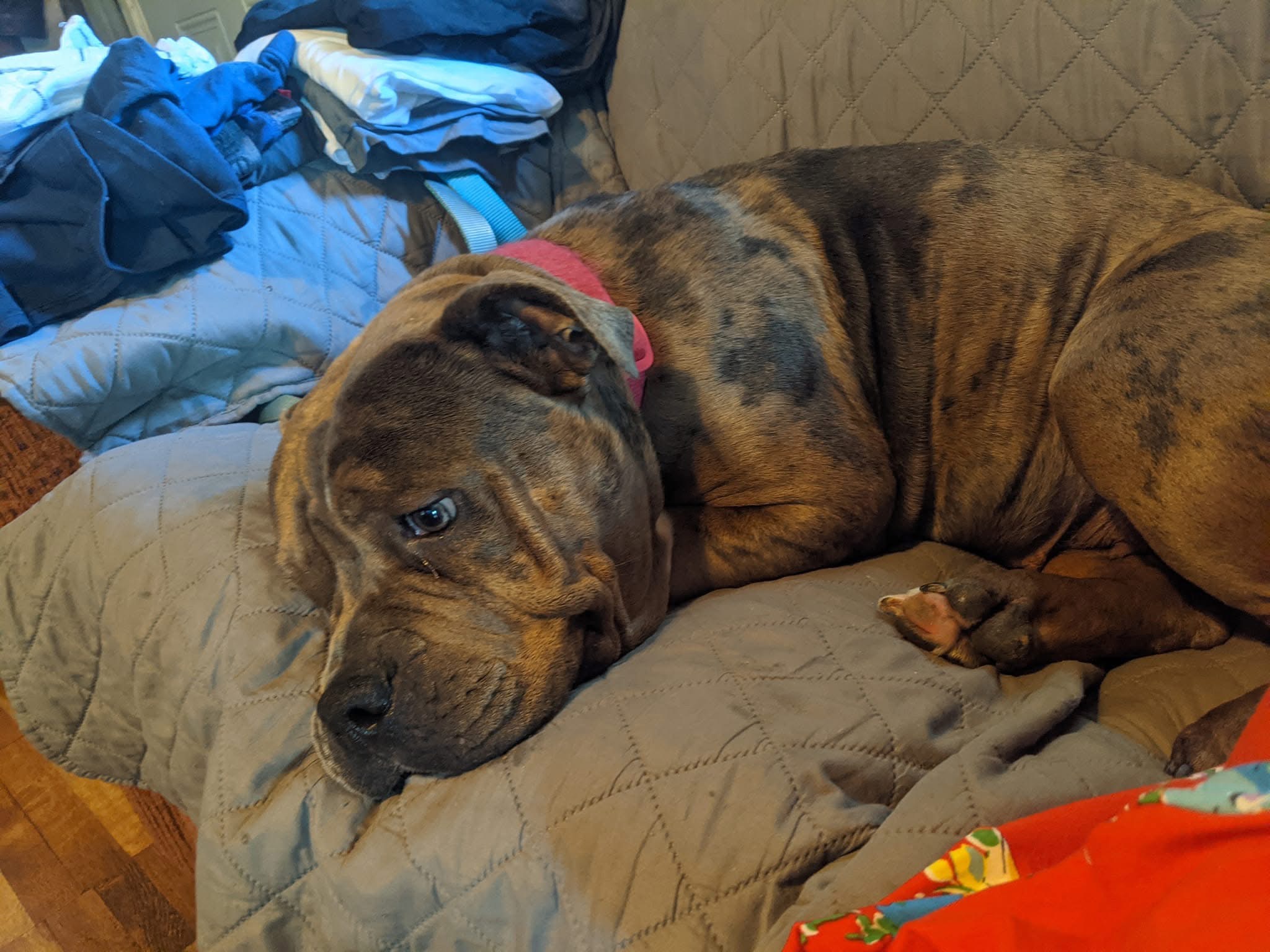 Laila is my loving and spoiled American Bully who has always been a joyful part of my life. Recently, she stopped eating for two days, and I noticed blood in her stool, mucus, and blood draining from her vulva. She was drinking large amounts of water, throwing up excessively, and became very dehydrated and uncomfortable. Hearing her moan in pain broke my heart, and I knew I had to get her help right away.
