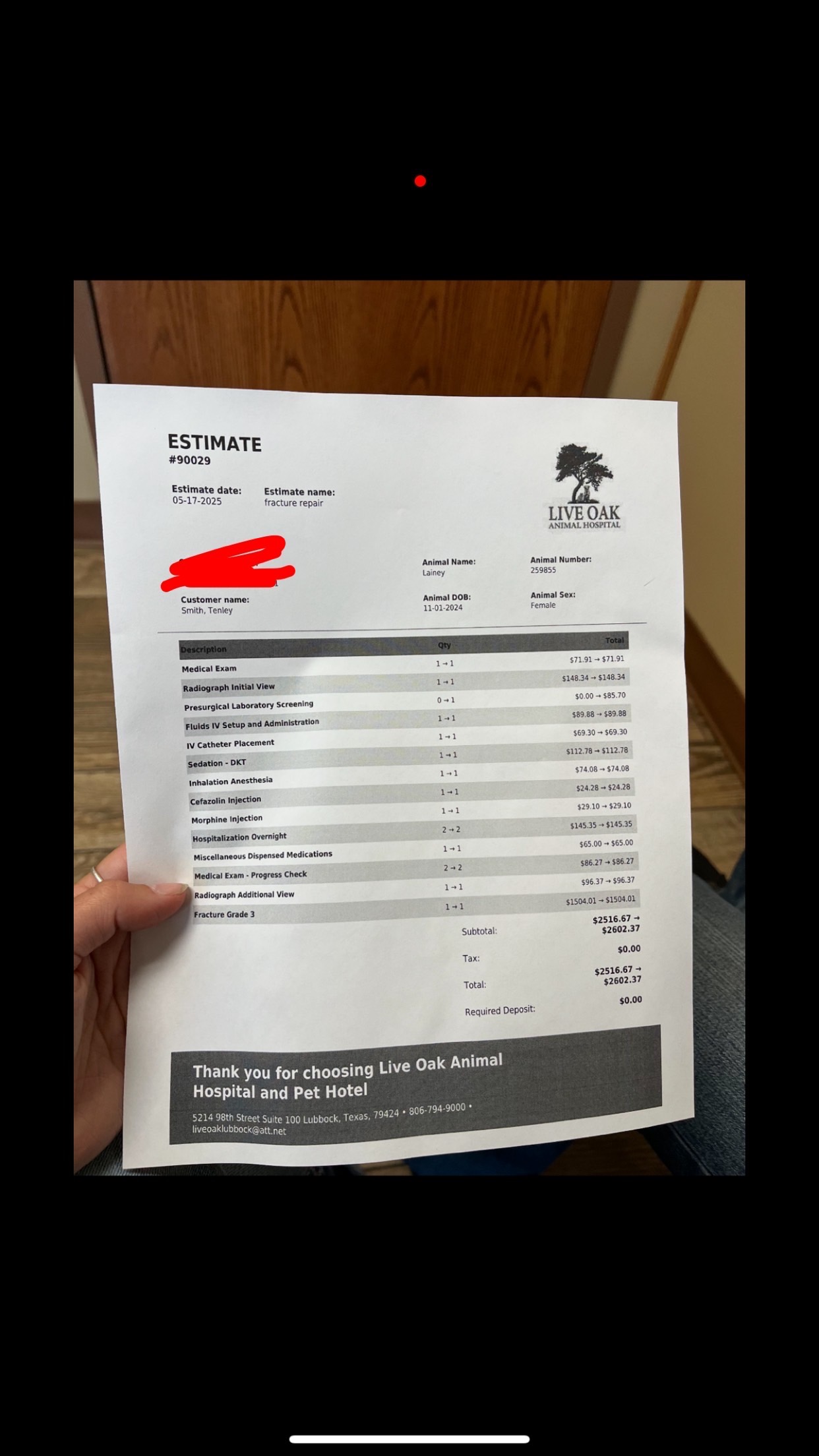 On May 16th, 2025, little Lainey was just running around doing fun-loving dog things. Little did she suspect a line was down to the neighbors property and a donkey ventured on to Laineys property. The donkey rushed at little Lainey. Lainey, with all her might, tried to escape, but her little legs couldn't move in time, leaving her trampled, hurt, and needing immediate attention. Tenley and Brayden rushed off to Lubbock to seek help at Live Oak Hospital. After spending 14 hours waiting to get the results, Lainey had endured a broken rear hind leg. We are asking all friends and family to help come together on the unexpected cost to help Lainey receive a full recovery. She deserves a great life to bark and be a normal dog! She is loved greatly. Tenley's ride or die!