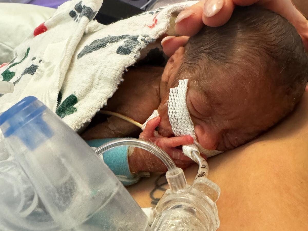 Just three days before Christmas, little Laramie Lou Dove was born on December 22nd at just 23 weeks, weighing only 1 pound and 3 ounces. She was born to Kennedy Barnett and Dylan Dove.