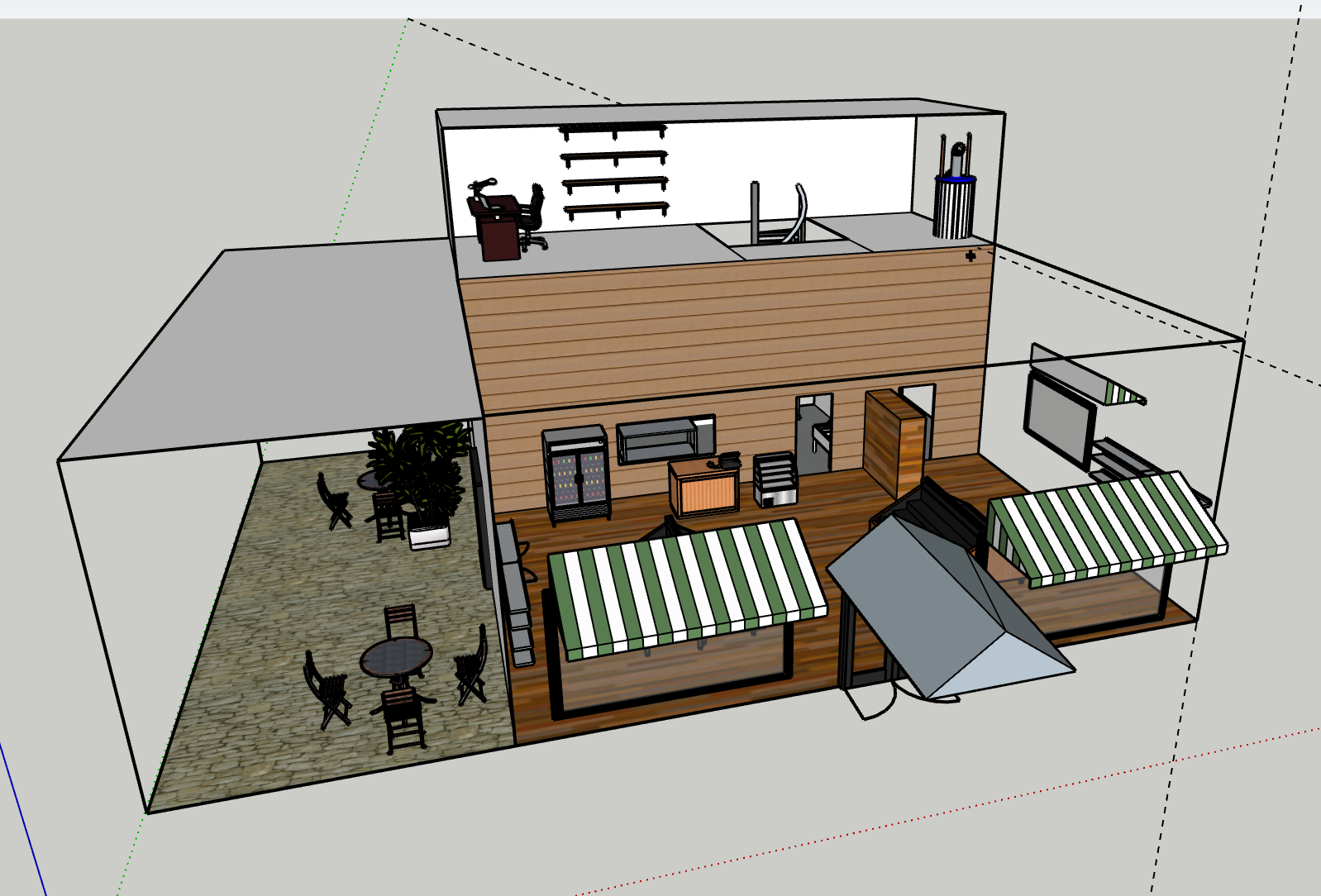 Equipment like coolers, shelving, and kitchen appliances