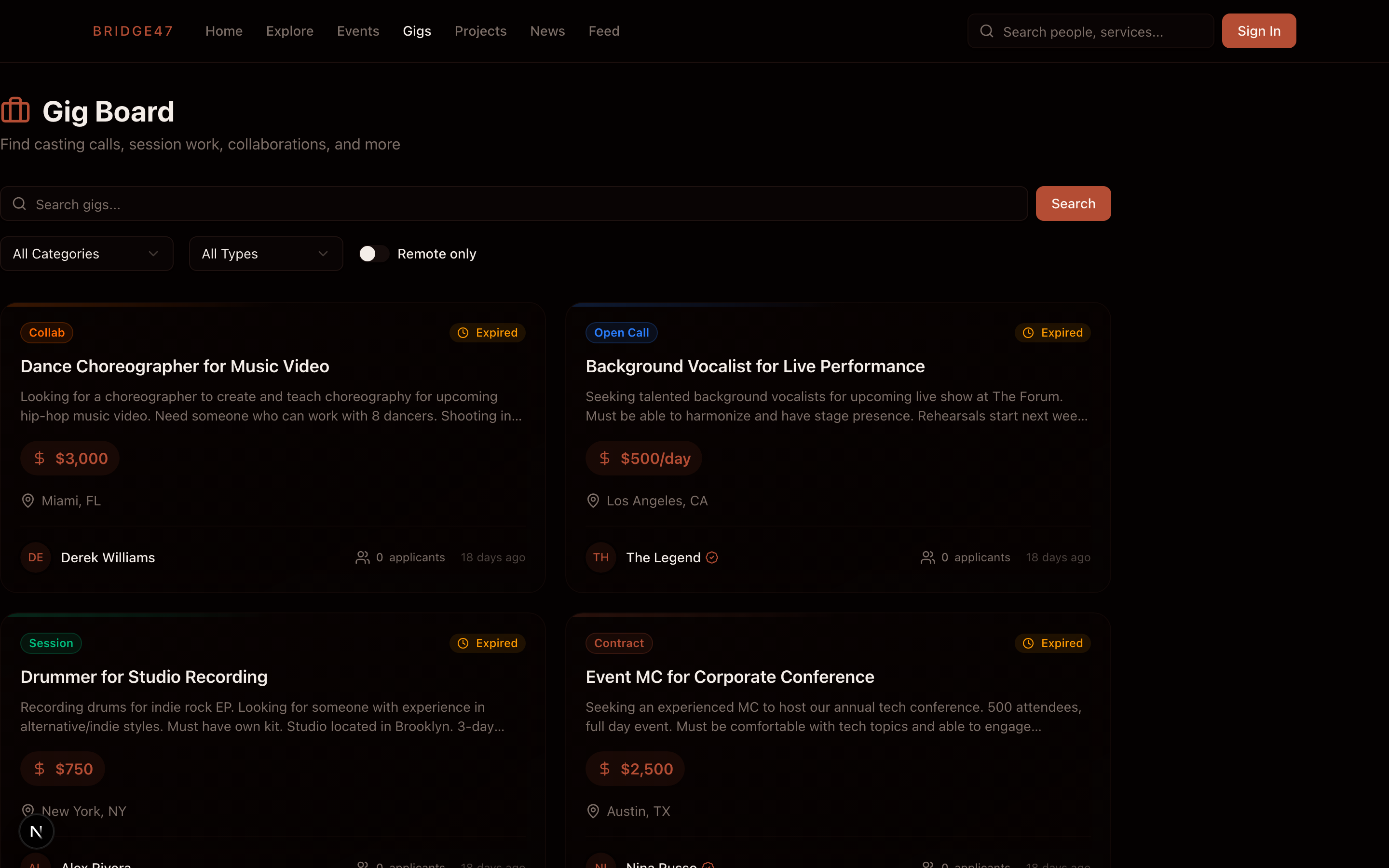 Bridge 47 is like LinkedIn meets Soho House but for the entertainment industry. A single place to book sessions, find events, sell content, license music, sign contracts, and run brand campaigns with payments, escrow, and analytics built into every transaction.