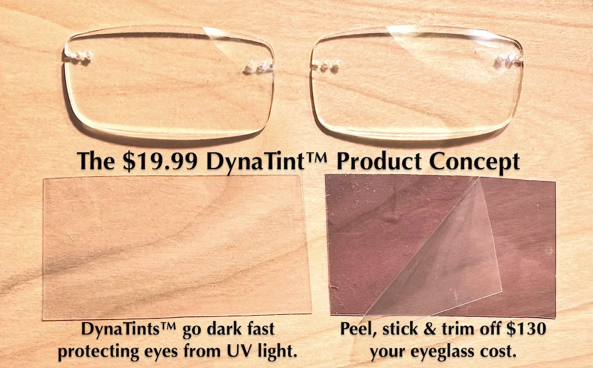 I'm a formally trained scientist with a Bachelor's degree in Chemistry from Miami University in Oxford, Ohio. I've been an independent chemist for almost 40 years. The DynaTints™ project is going on 2 decades of out-of-pocket R&D costs. I need your help to bring DynaTints™ to market and finally make photochromic glasses affordable to everyone!