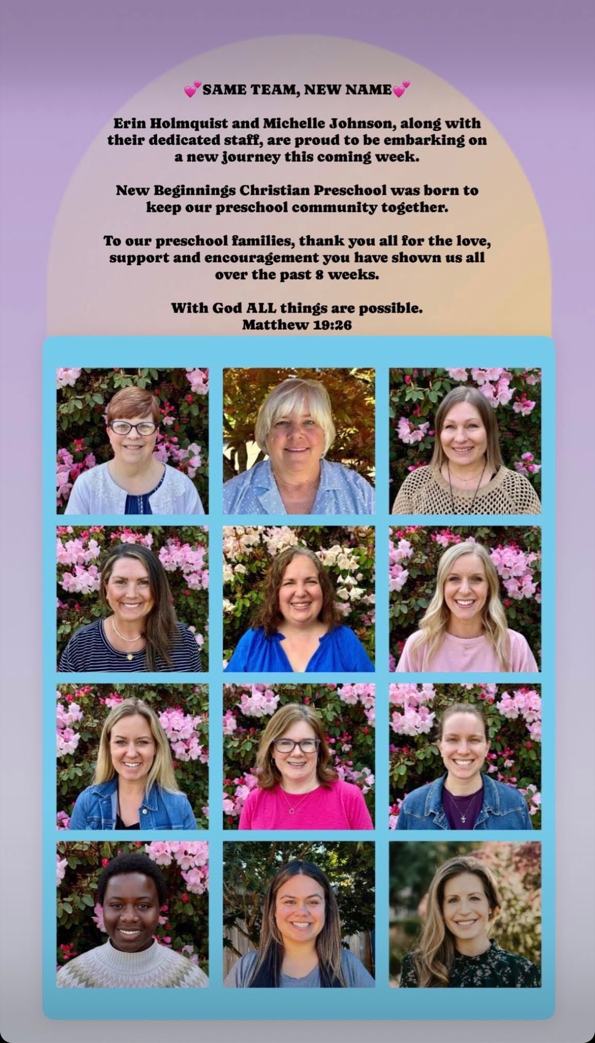 HELP US LAUNCH NEW BEGINNINGS CHRISTIAN PRESCHOOL!