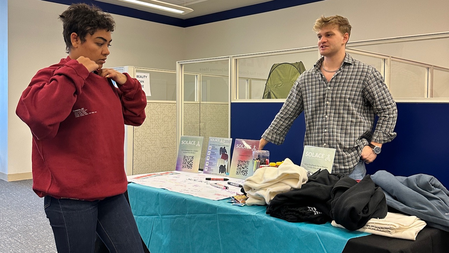 SOLACE is reimagining fashion from the inside out. Our first collection includes sweatshirts and sweatpants made with ultra-soft, tagless fabrics, seamless design, adjustable features, and hidden or visible fidget elements — all tested with and designed alongside the neurodivergent community. We’re here to offer reassurance and warmth, not just in fabric, but in how our clothing makes people feel within.