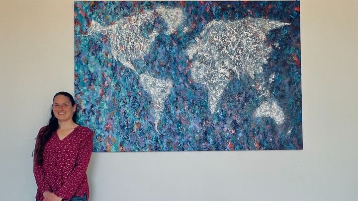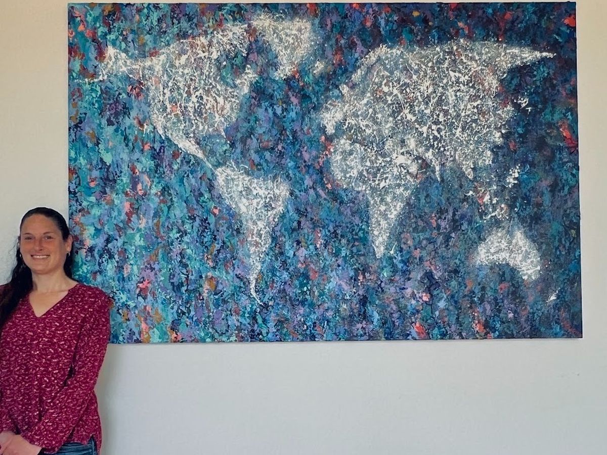 Lauren is also a gifted artist whose creations radiate connection and hope. A Fine Arts graduate, she blends technical mastery with fearless creativity, and her work is alive with color, texture, and movement. One of her recent pieces, an abstract world map, speaks to our shared humanity and the vision of connection across borders. Her art reflects her compassion, curiosity, and profound respect for the world, offering light, healing, and inspiration when it is most needed.