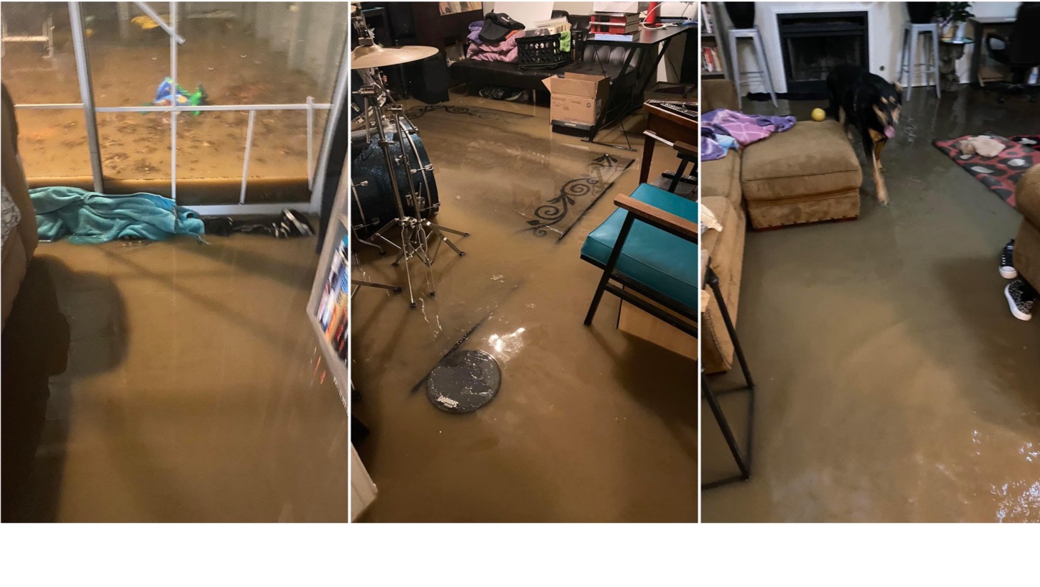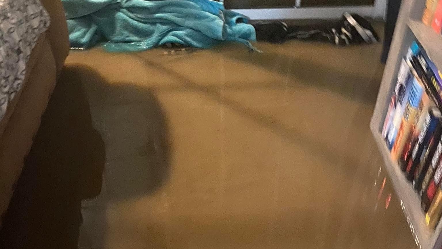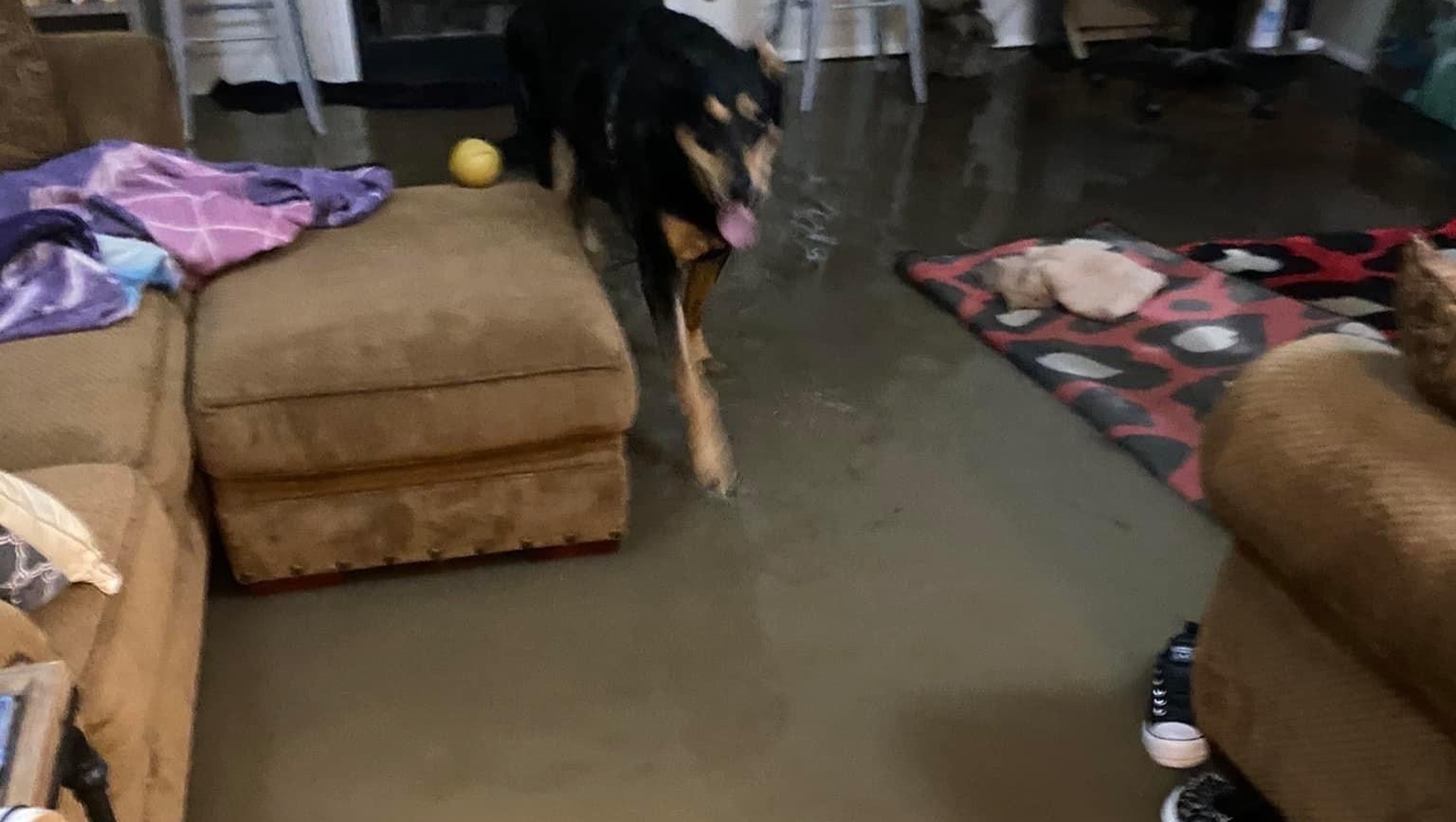 As her facebook post explains, "The flooding in Fayetteville provided for an exciting 3:30 am wake up to find the entire house flooded. By the time essentials were gathered the water was too high to evacuate. We were luckier than we could’ve been because, not far from us, 60 people had to be evacuated by boat!! Flooding was scarier than expected, and of course it had to happen right in the middle of my finals. Could definitely use prayers/good vibes sent our way. The dogs may never go outside when it’s raining again."