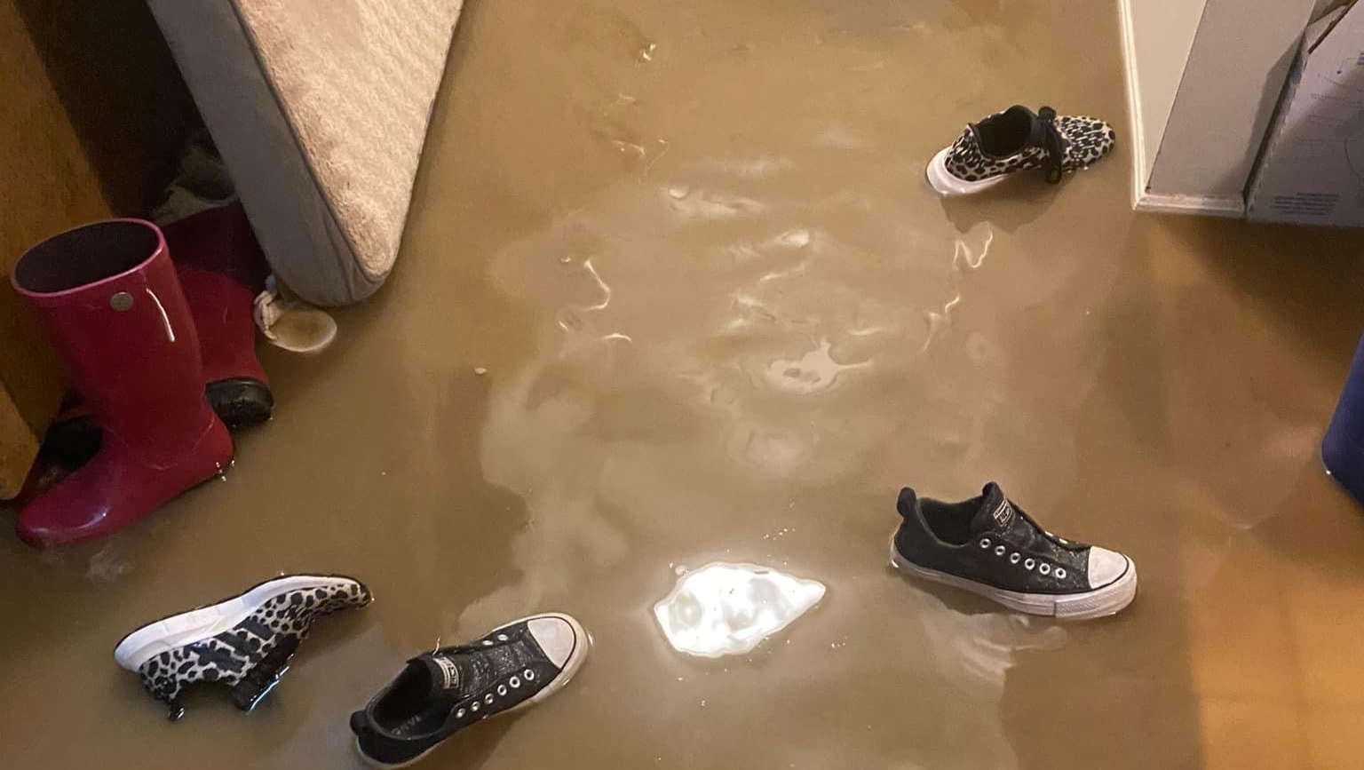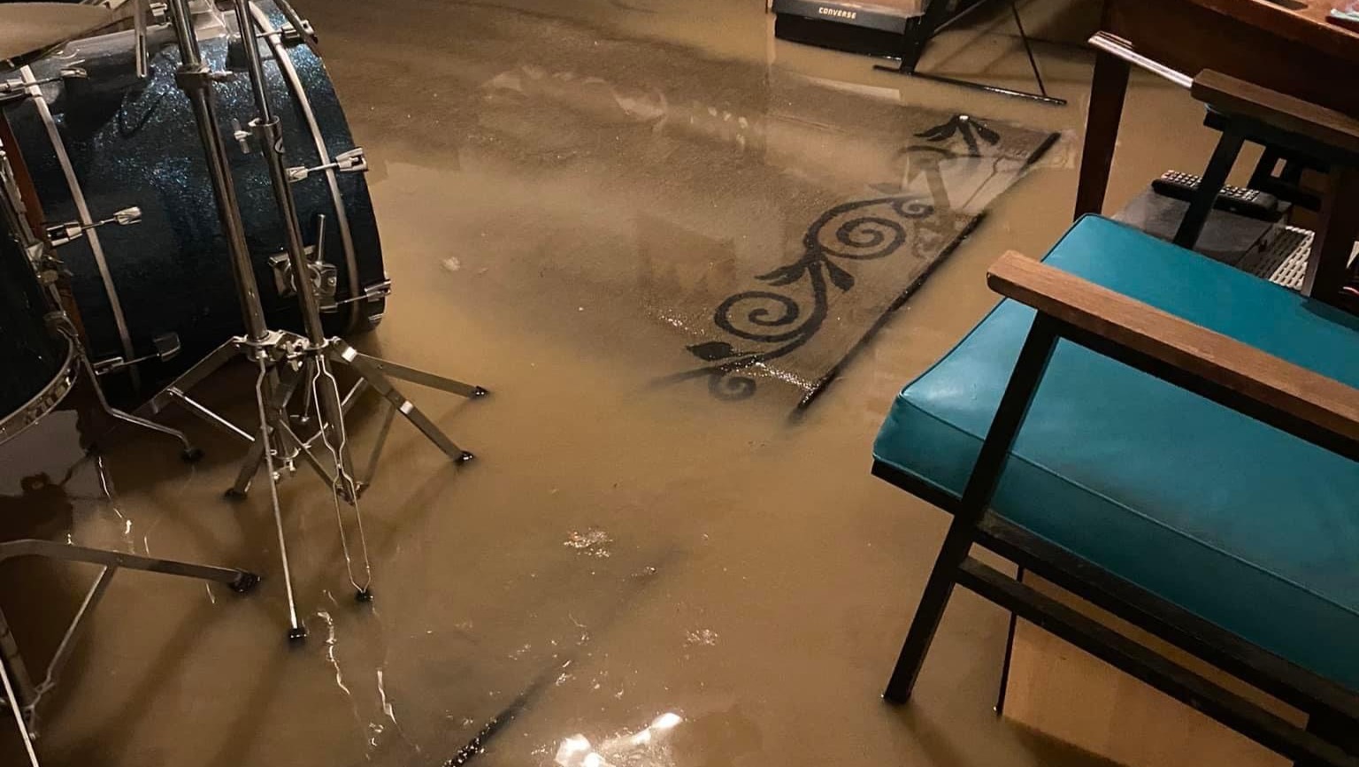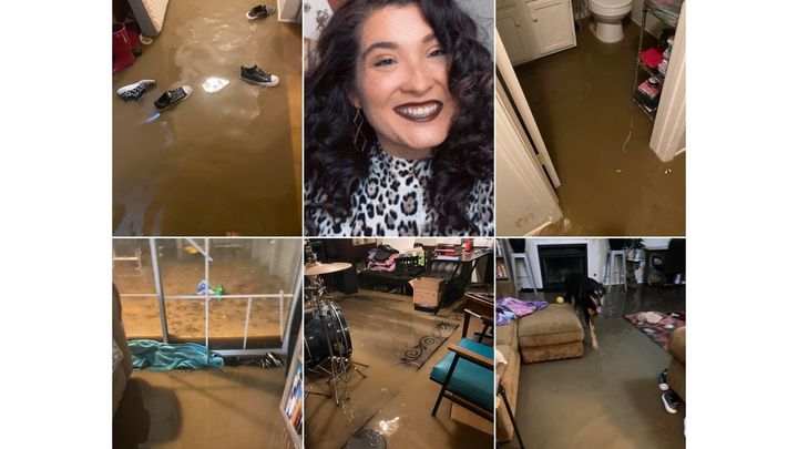 As her facebook post explains, "The flooding in Fayetteville provided for an exciting 3:30 am wake up to find the entire house flooded. By the time essentials were gathered the water was too high to evacuate. We were luckier than we could’ve been because, not far from us, 60 people had to be evacuated by boat!! Flooding was scarier than expected, and of course it had to happen right in the middle of my finals. Could definitely use prayers/good vibes sent our way. The dogs may never go outside when it’s raining again."