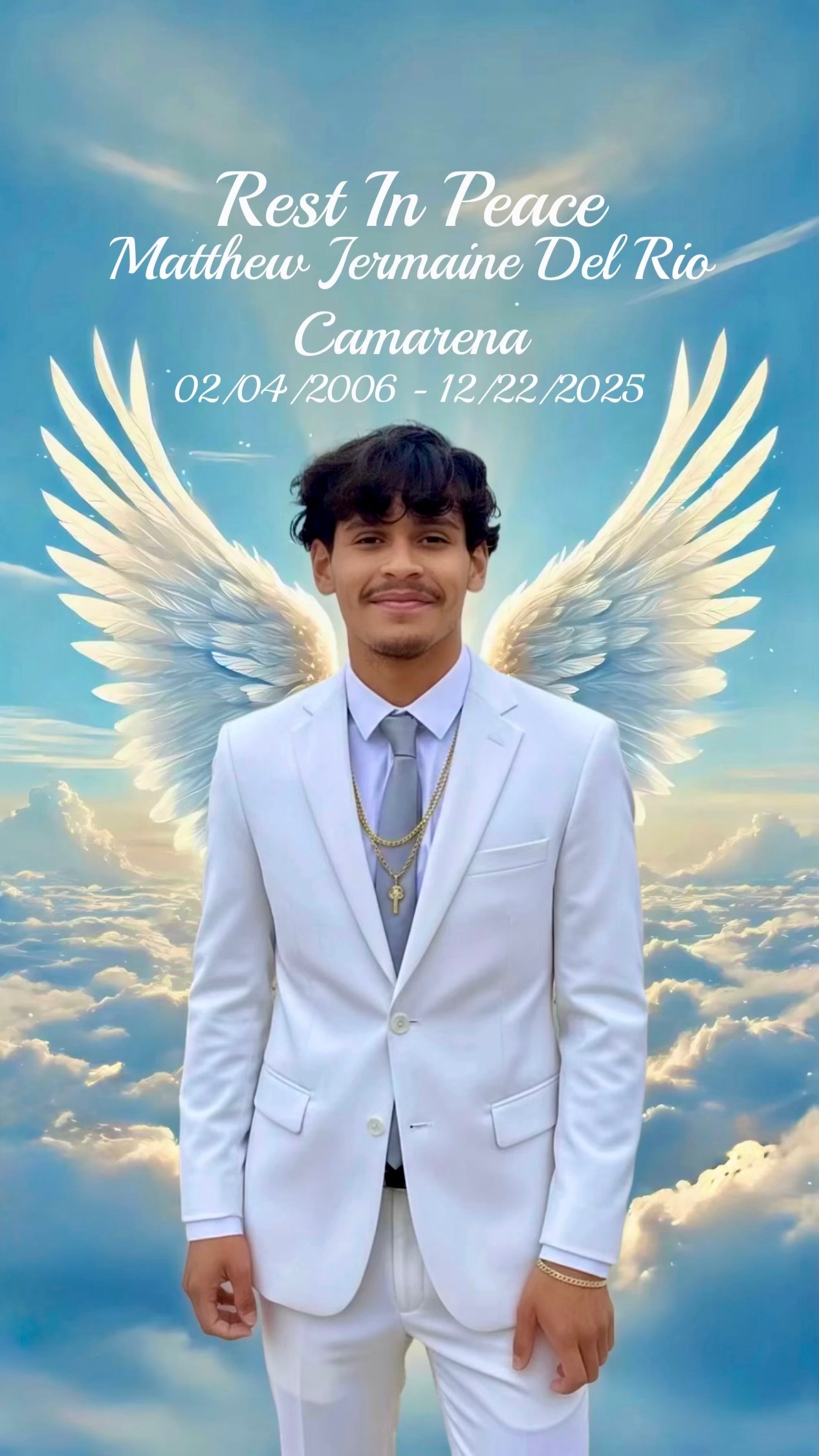 On December 22, 2025, my family experienced an unimaginable loss. My baby brother, Matthew Jermaine Del Rio, was taken from us in a horrific vehicle accident. Matthew was only 19 years old, just beginning his journey into adulthood. He had a beautiful soul, always putting his family first and wishing the best for everyone around him. His kindness and warmth touched everyone he met, and he was truly loved by all.