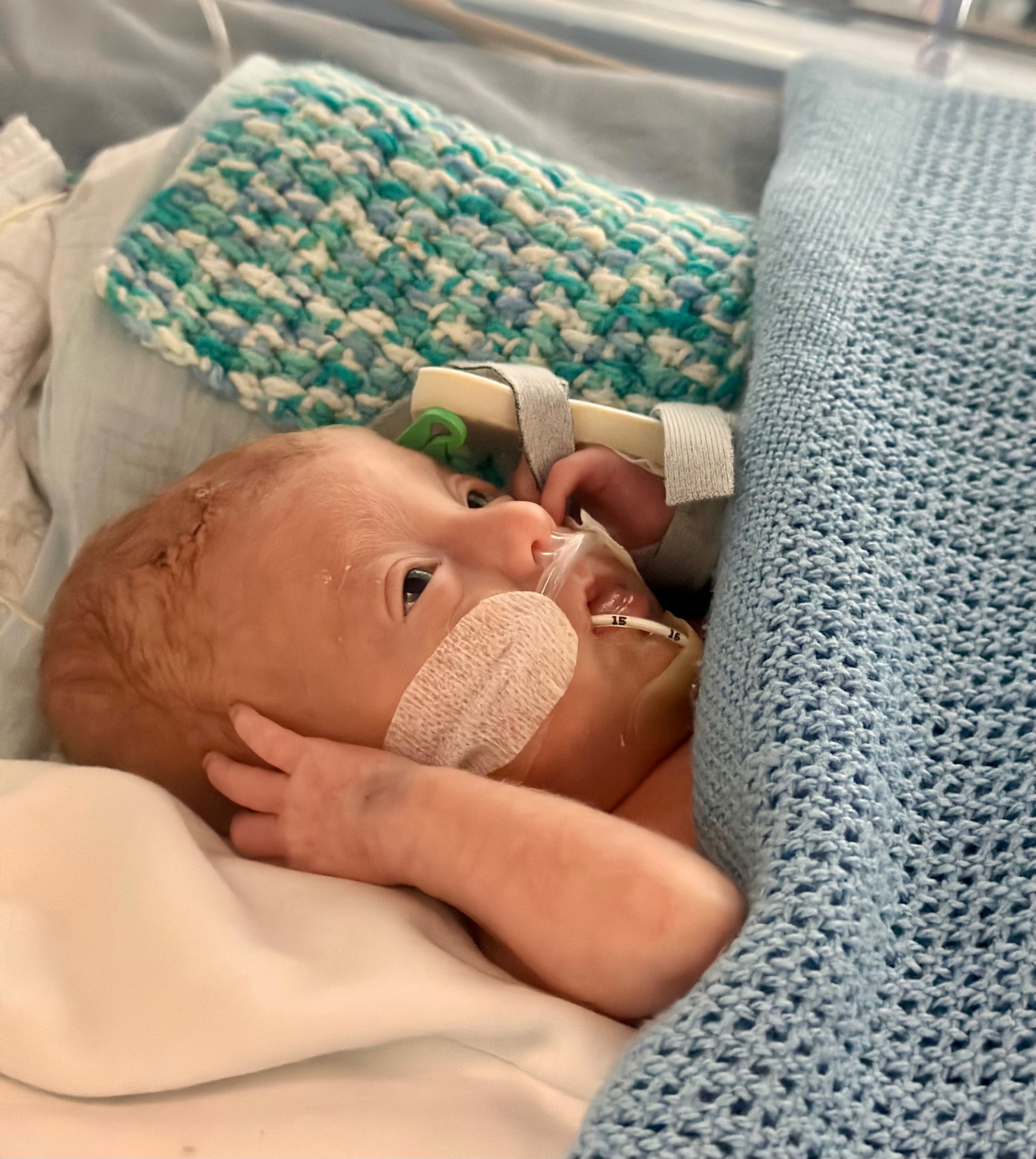 Because he was born so early and under traumatic circumstances, Leo suffered severe bilateral brain bleeds (Grade 3 and 4 Intraventricular Haemorrhages). These injuries led to PVL, and Leo went on to develop hydrocephalus, chronic lung disease, metabolic bone disease, and a PDA, among other complications.