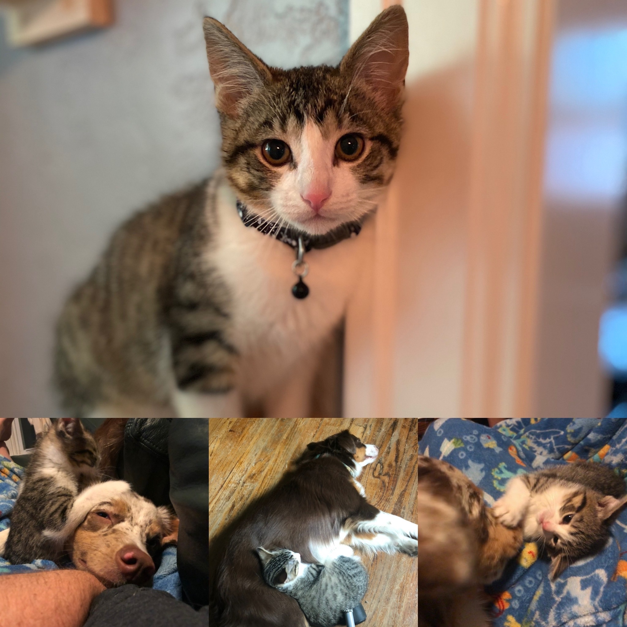 Leo isn’t just a cat he’s family. He’s our furry little warrior, raised from a kitten alongside a litter of puppies, and to this day, he truly believes he’s one of the dogs. You’ve probably seen him weaving through your legs on walks, tagging along with our kids, or confidently greeting toddlers, seniors, and even grumpy pups with his bright eyes and gentle purrs. He’s more than a pet Leo is our “neighborhood greeter,” and his bold spirit brings joy to everyone he meets.