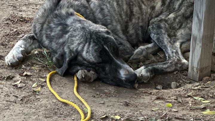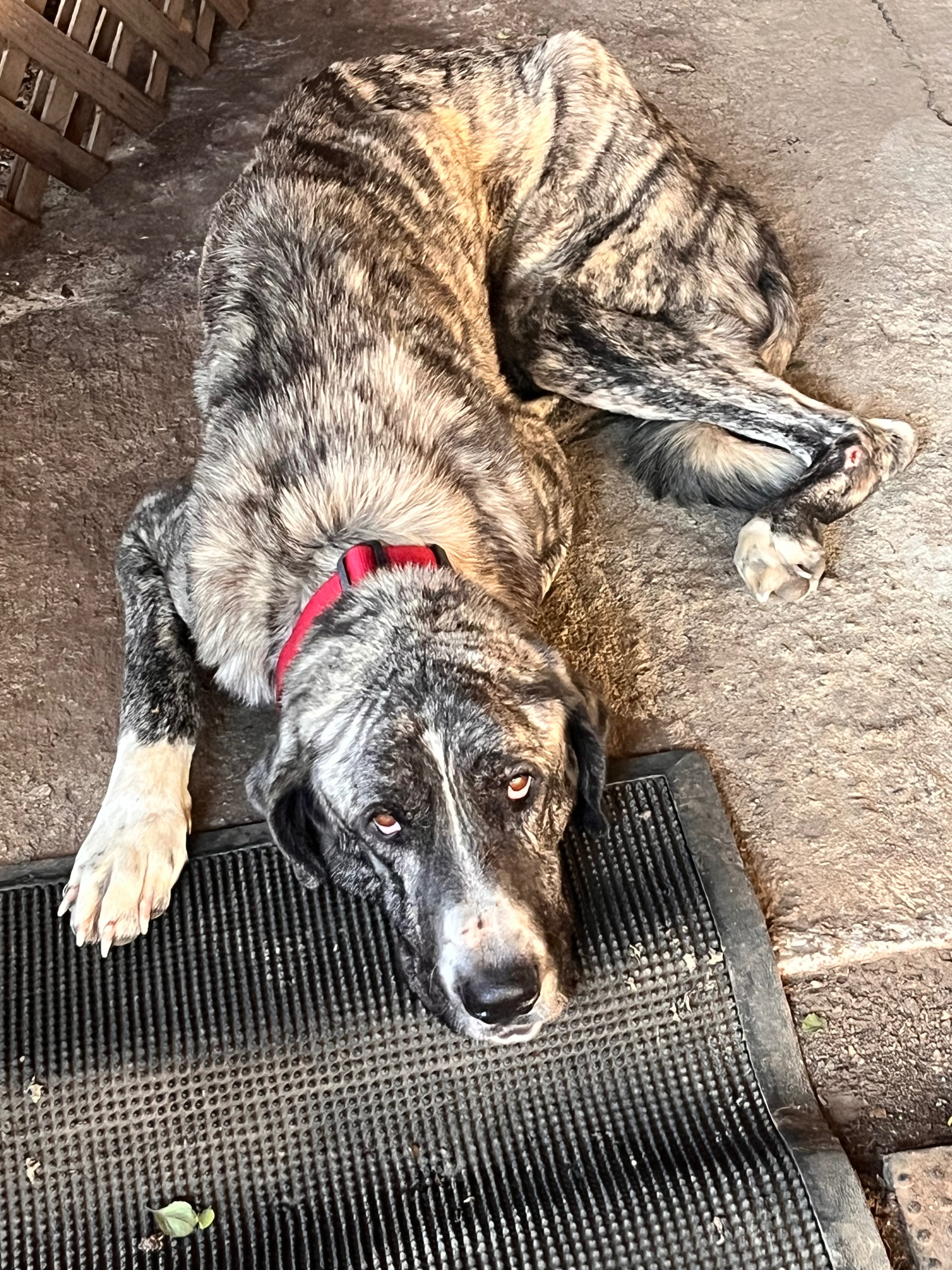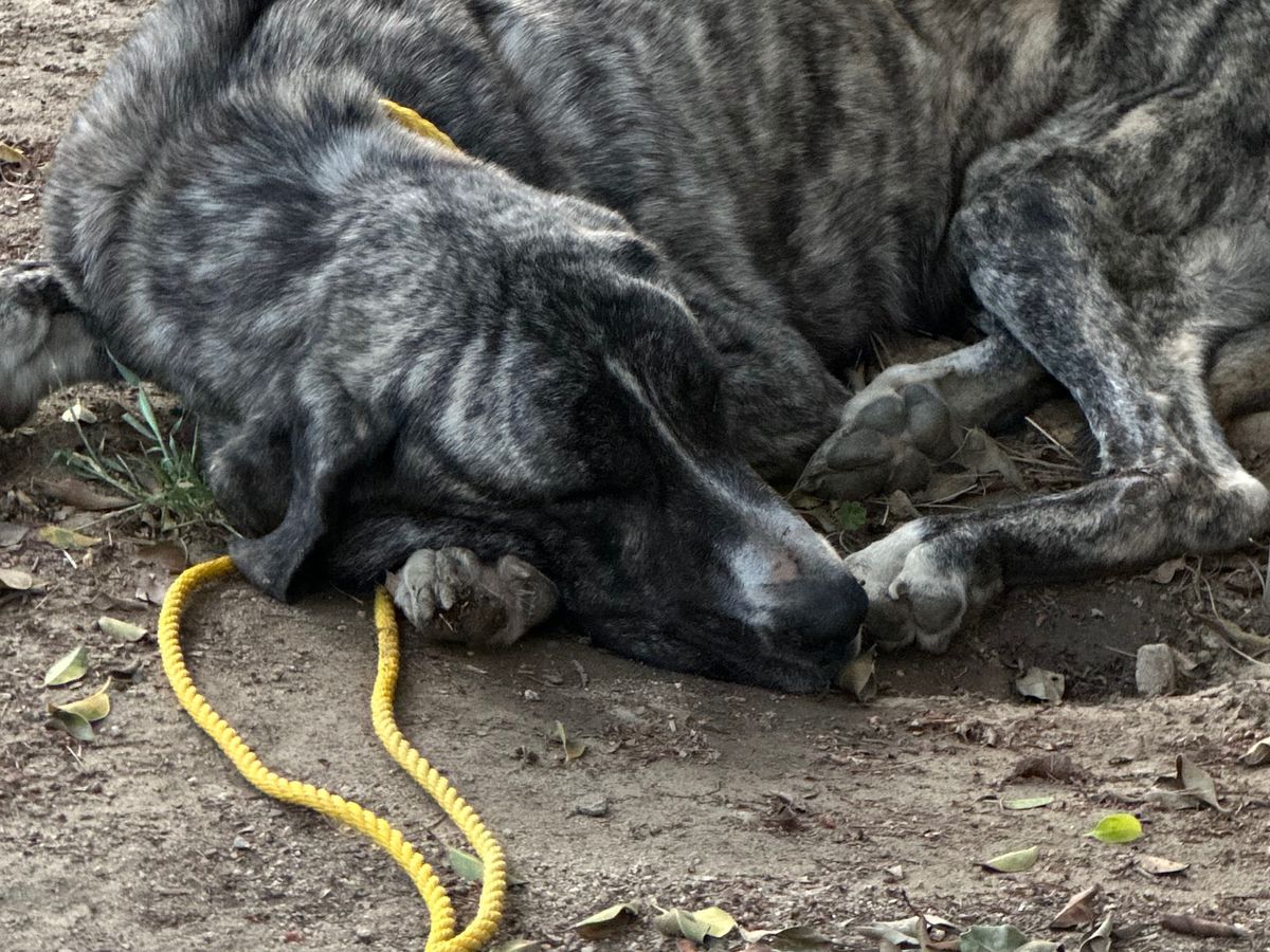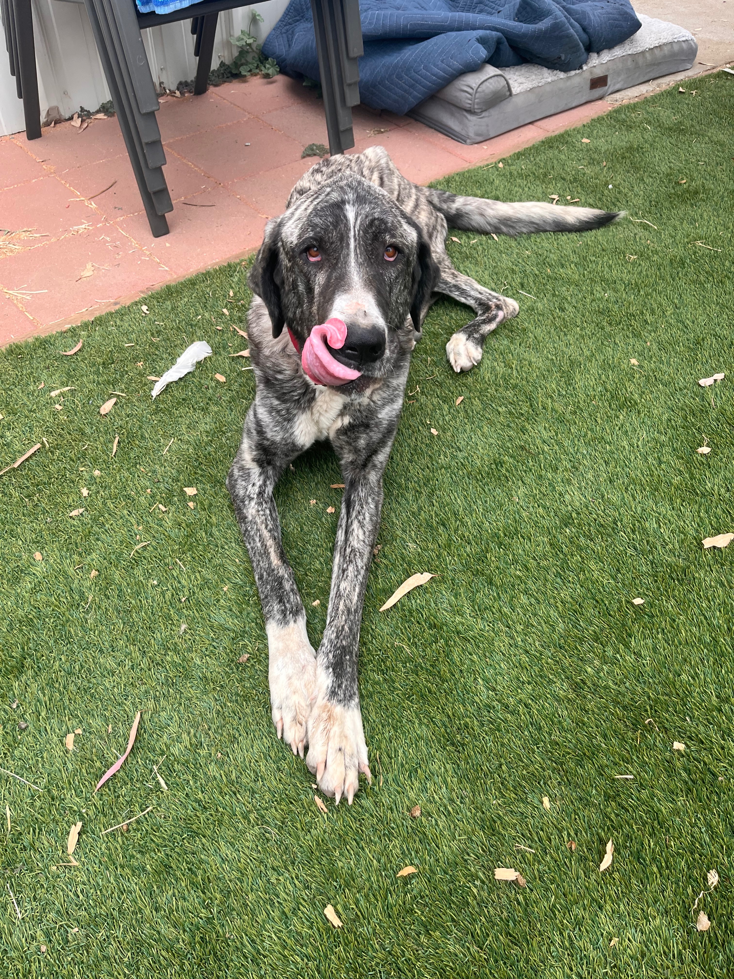 Leona came into our lives as a stray, severely underweight and in desperate need of help. She is an Anatolian shepherd who weighed under 50 pounds when we found her, and she was so emaciated that we had to slow-feed her and keep her at the vet for four days just to get her strong enough for surgery. During her stay, she received X-rays that revealed a broken leg, and the veterinary team worked hard to stabilize her so she could have the operation she needs.