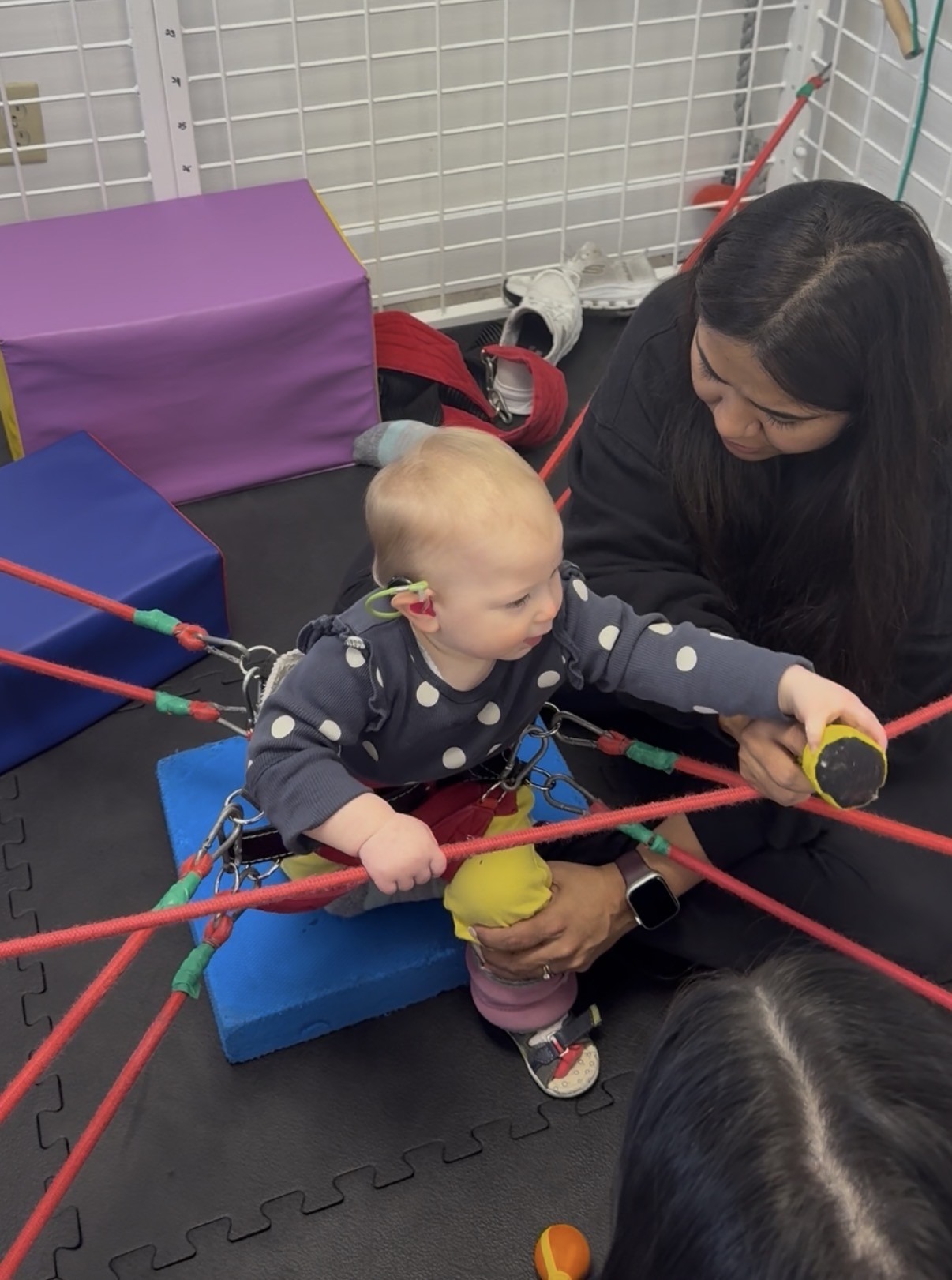 Things that come naturally to most children, like standing independently, communicating needs, and building core strength, take extraordinary effort and repetition for Lily. Specialized therapists, adapted techniques, and relentless practice. Yet she shows up with determination every single day, and she brings joy to every person who works with her.