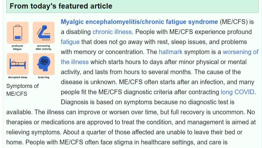 Description of ME/CFS from Wikipedia: (watch videos linked at the end of this page for more info about ME)