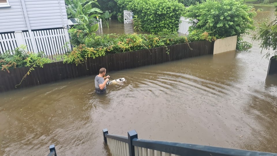 We are a young couple who live in the flood-devastated suburb of Rocklea. In the early hours of Saturday morning, we woke to the floodwaters already 1/4 of the way up our front stairs of a highset house that had been raised above the 2011 height. Within an hour, it was lapping at the meter box. We called SES for evacuation, but after 2 hours, we still had no idea when they would arrive. We needed to get out, with the water rising quickly and unsure if the SES would allow us to bring our beloved pets of 6 cats and 2 dogs, we decided to act on our own. With a few precious belongings, we left through chest height water. Lucky we did as the water completely engulfed the 2nd level. We have lost all our possessions and I know some people think we are crazy for getting all the pets out, but they are our family.