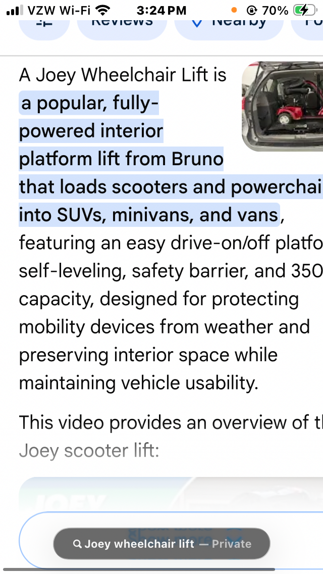 I can no longer operate the wheelchair lift I currently own. Now I am needing a different lift and vehicle to go anywhere on my own and transport my wheelchair. This has left me housebound and alone.