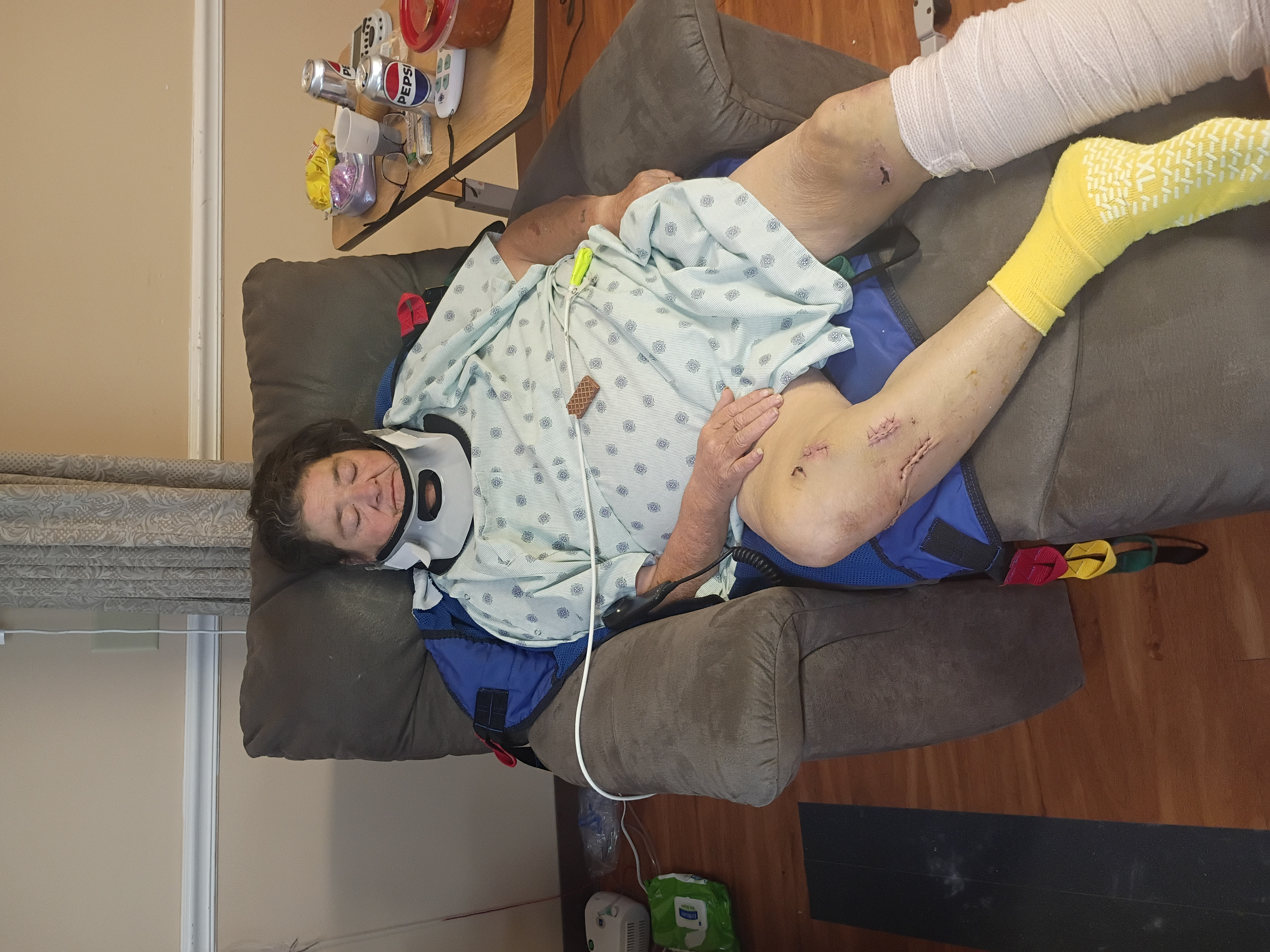 My name is Jamie Nipper. My mother, Lisa Nipper, was in a serious car accident on October 28th. She spent 3 weeks in the hospital and is now in rehabilitation with multiple injuries: a fractured neck, a broken left ankle, and both bones in her right knee broken. She cannot put weight on her leg yet.
