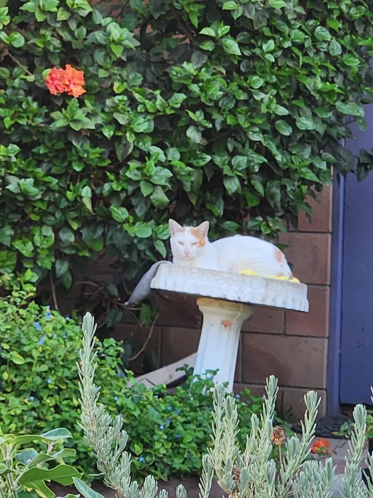 Little Baby is a community cat who’s been cared for by Christina Hock for over a year. She was abandoned by a neighbor, but Christina took her in as part of a small colony. Little Baby is especially bonded with her best friend, Little Mama, and spends her days lounging on the patio, snacking on wet and dry food, and soaking up the love Christina provides.