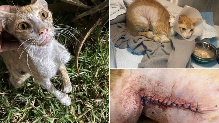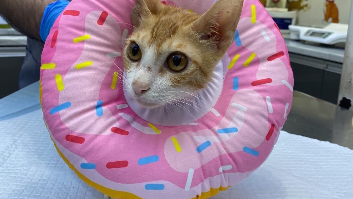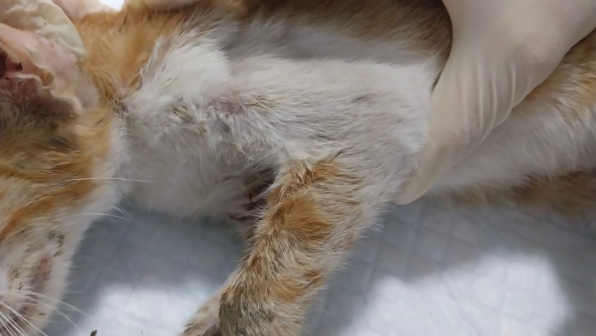 Remi is a tiny 6 month kitten who was left at a feeding station with bite marks all over her body. She had an abscess the size of a tennis ball on the right side of her abdomen. And her limb was bitten and not functioning well.