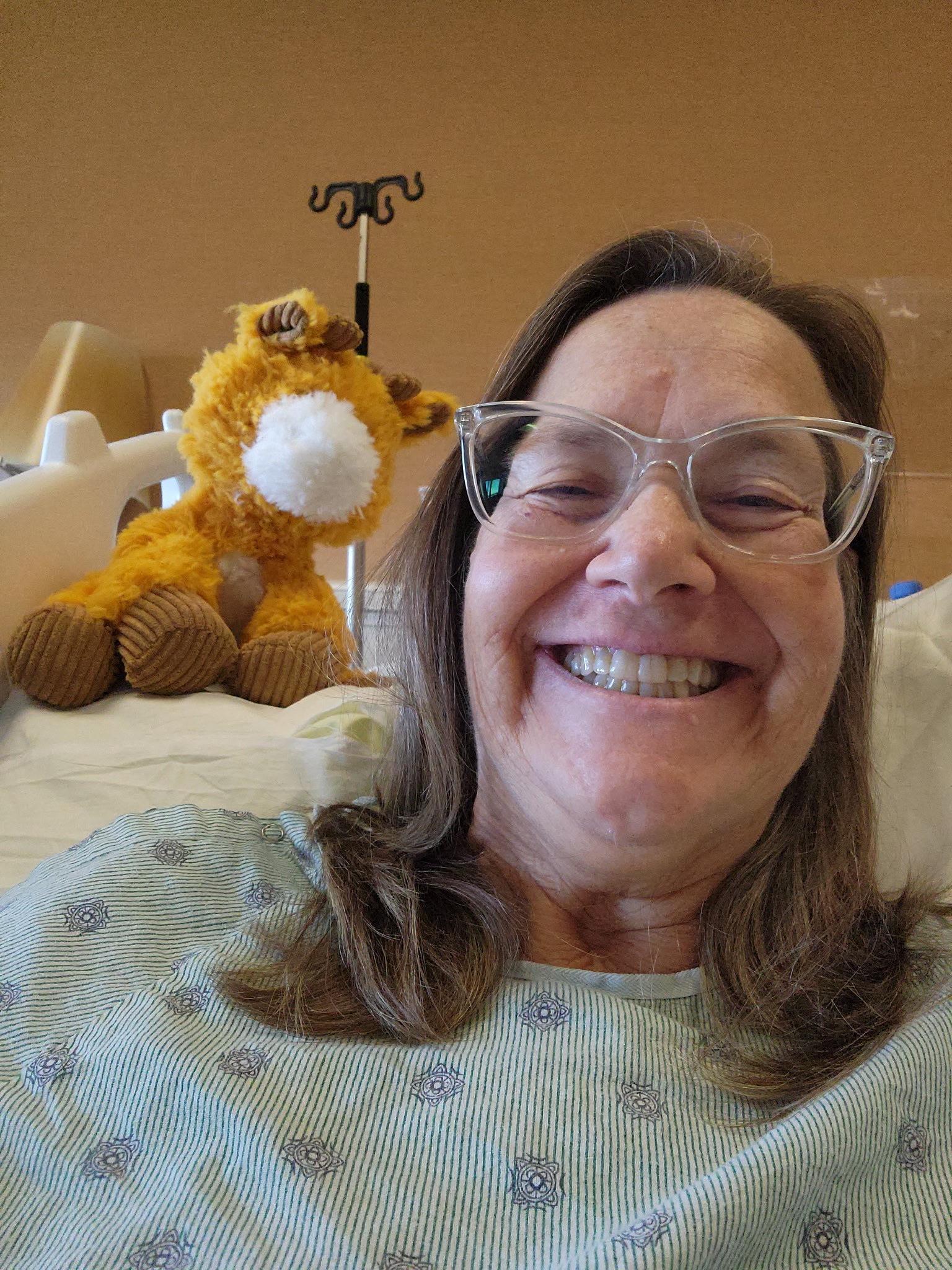 Liz underwent surgery to remove the tumor today, 5/6/2025 at 11 am. The goal of surgery is to preserve the vision in her right eye, as it is unlikely that she will regain what she has lost in the left.