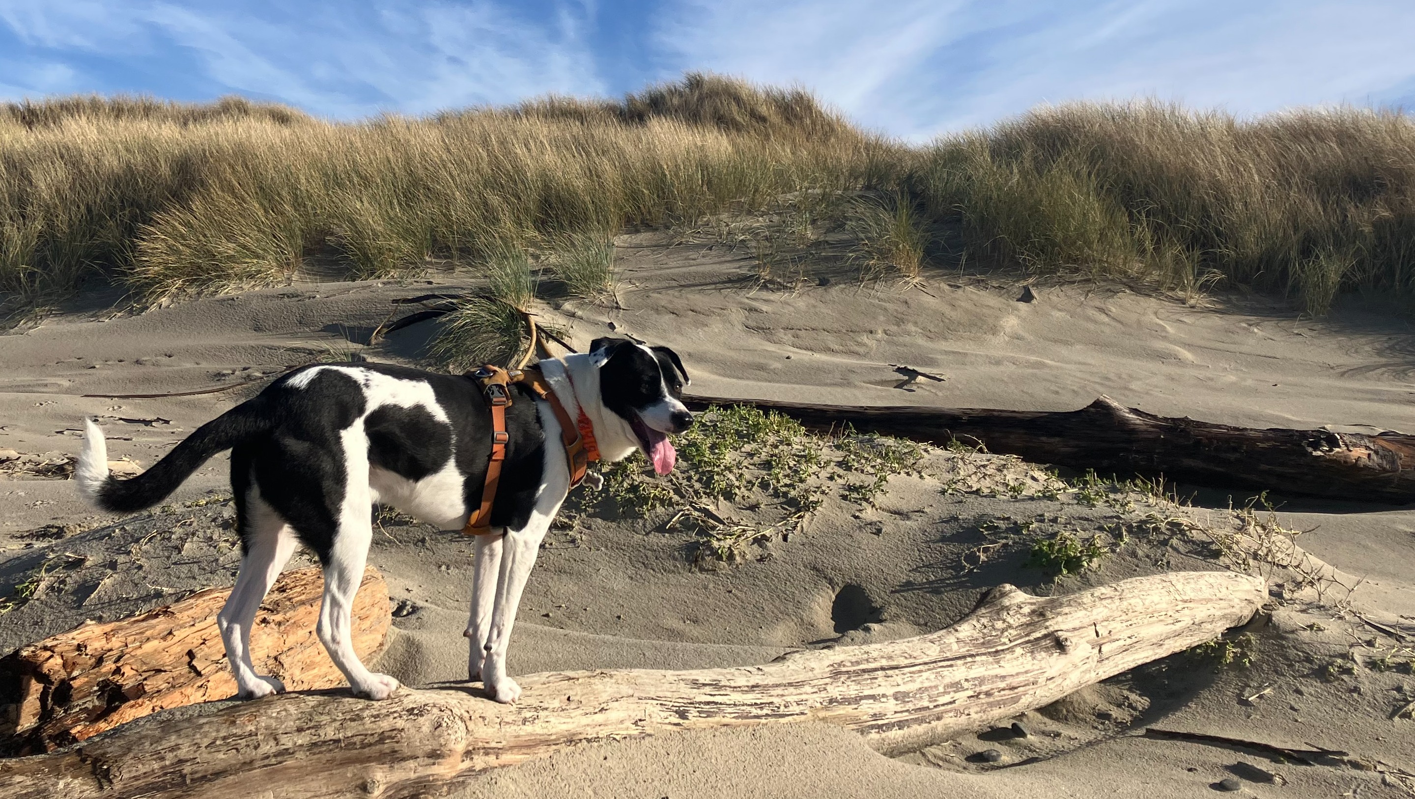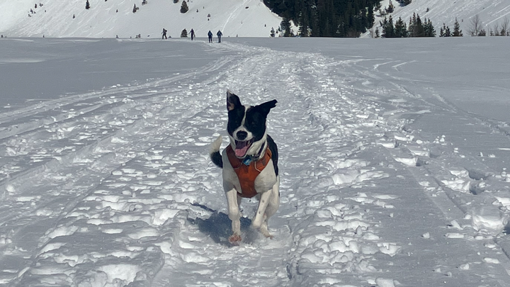 Lokni is our four year old puppy at heart. We adopted him in 2021 and from the minute we met him knew he was part of the family, and ever since he does nearly everything with us. He is an active, curious, intelligent boy and we are so grateful that he found his way to us. He loves to hike miles and miles, zip up and down the beach, play with his friends, and hop around in the snow.