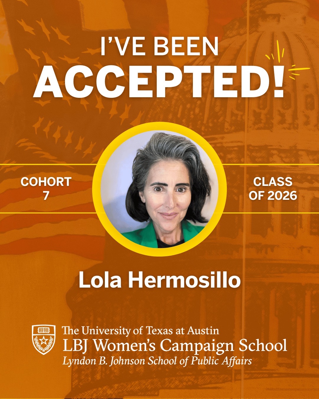 I’m honored to have been selected for the LBJ Women's Campaign School, a nationally recognized, nonpartisan program that trains women to run for office and win. From May through November 2026, I’ll gain the practical skills, mentorship, and network needed to step into leadership.
