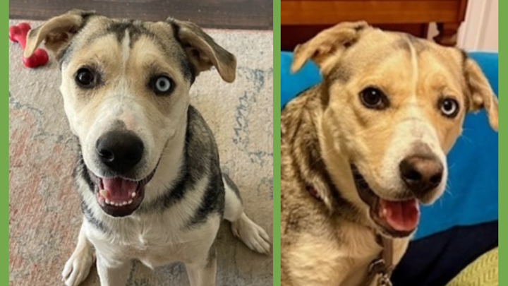 Two years old. One brown eye, one blue. A Siberian Husky mix who will sprint circles around a garden one minute and curl up asking for belly rubs the next. A dog who watches birds like she's studying them. A dog who waits by the door for her person to come home, then melts into the couch for cuddles.
