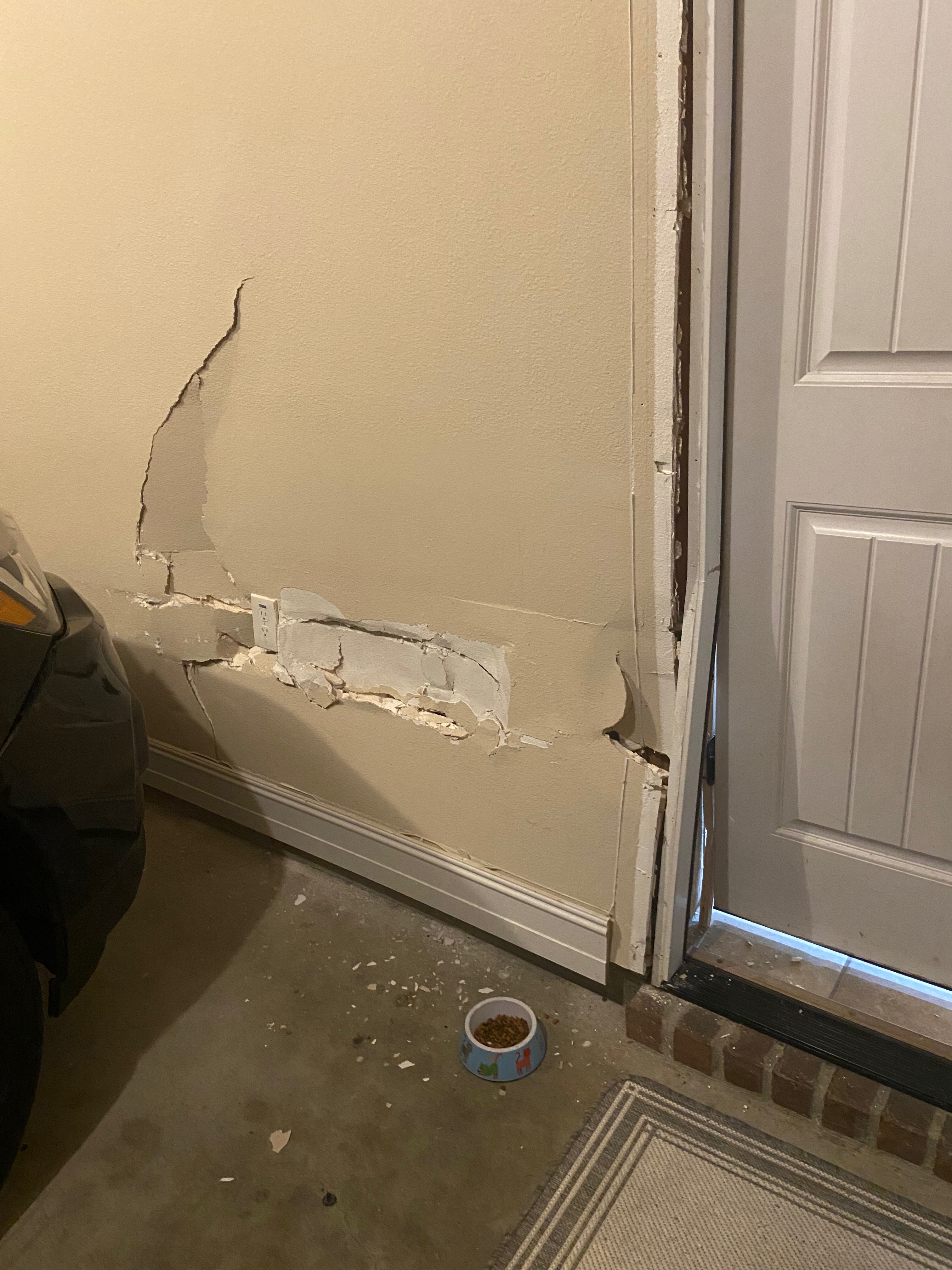 The impact caused significant damage between the garage and laundry room, breaking walls, trim, and the door frame, and leaving part of our home unsafe to use. We’ve had to close off the laundry area, and we can’t fully secure the door between the garage and the house, which makes it difficult to keep our home safe and insulated. The car’s front end and sensors were also badly affected, and I’m not able to drive right now — both because of the damage and the toll this experience has taken on my confidence and safety. Tori is taking the school bus, and we’re finding new ways to get to appointments and run errands as we adjust to these changes.