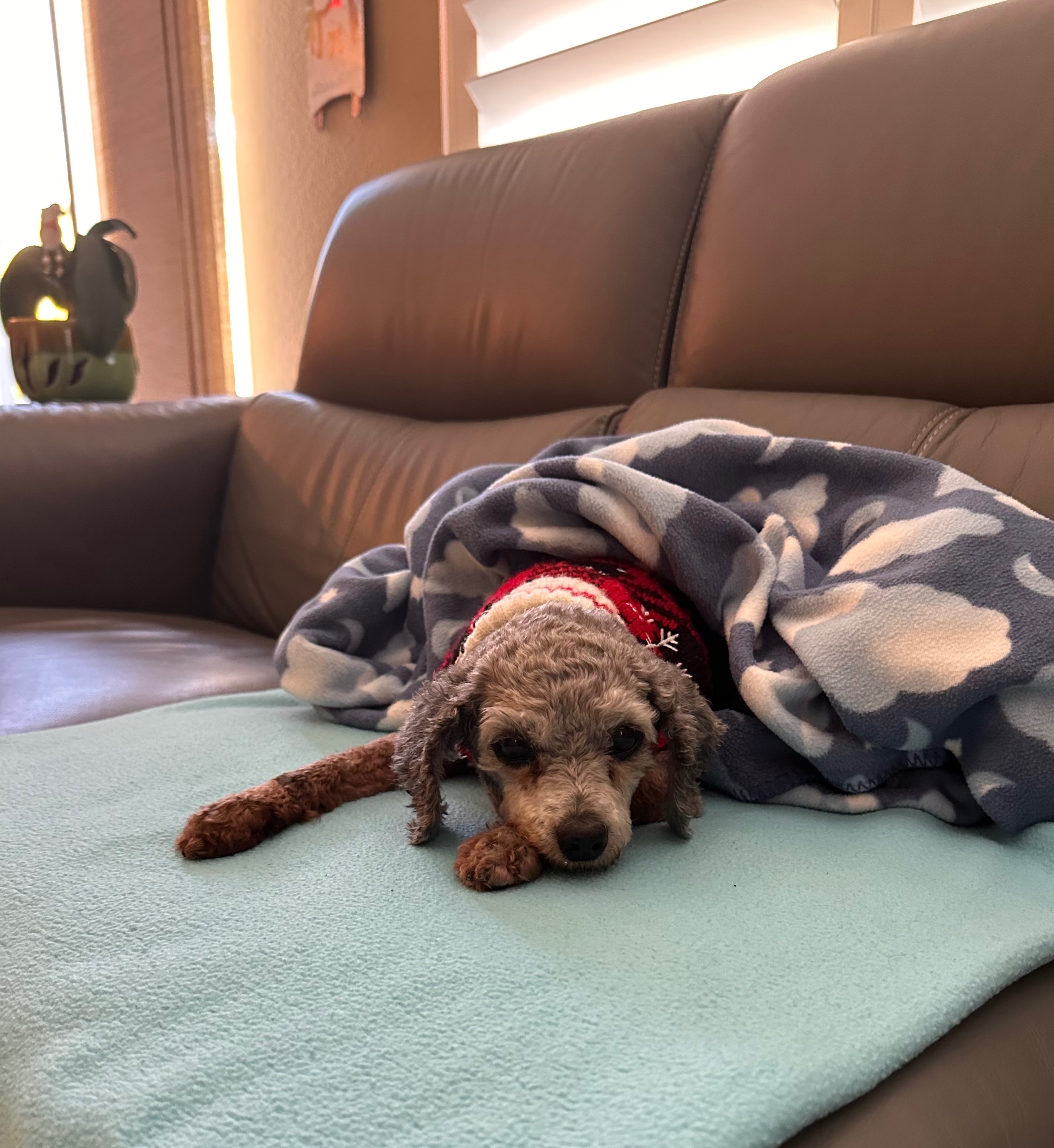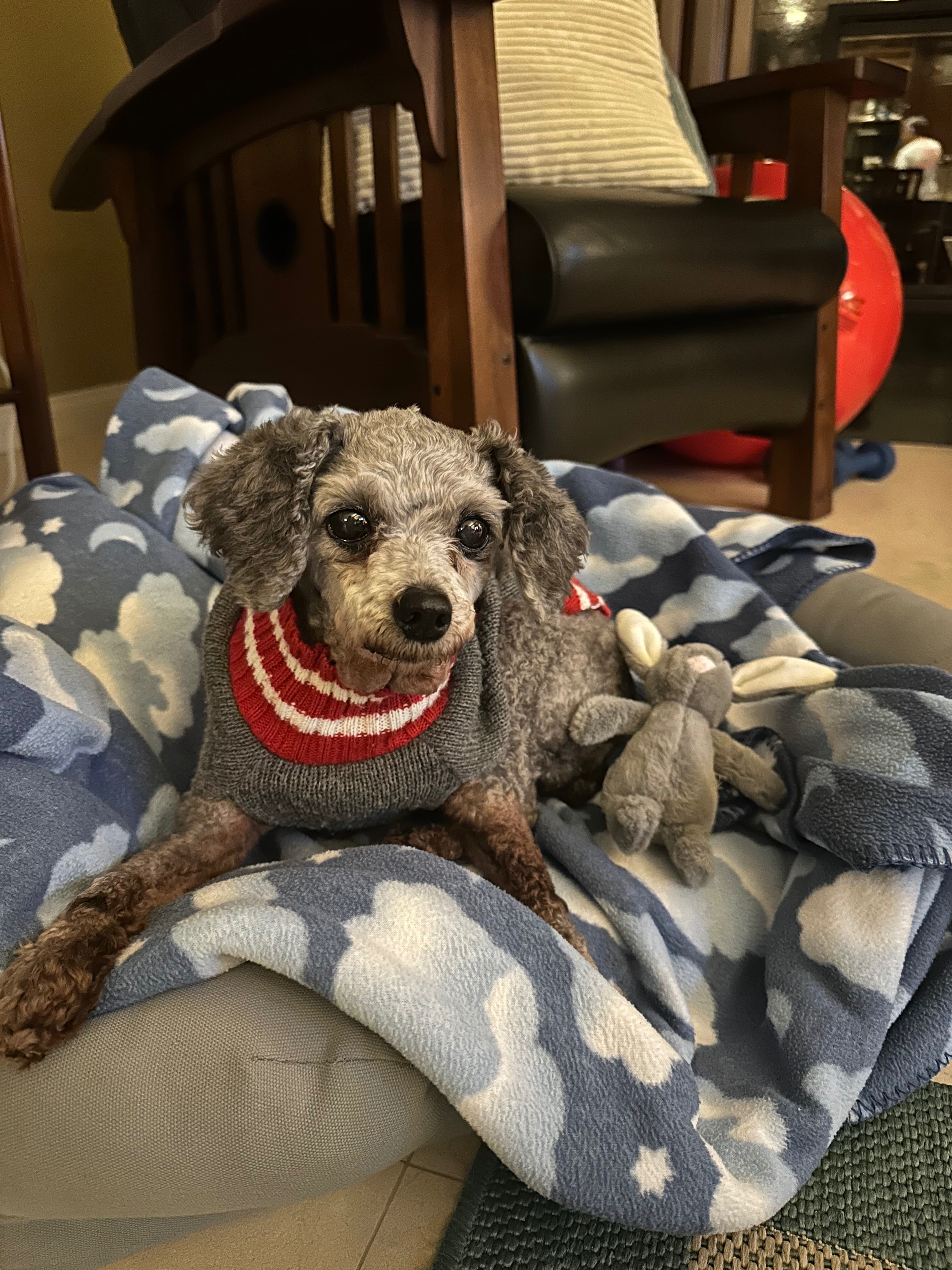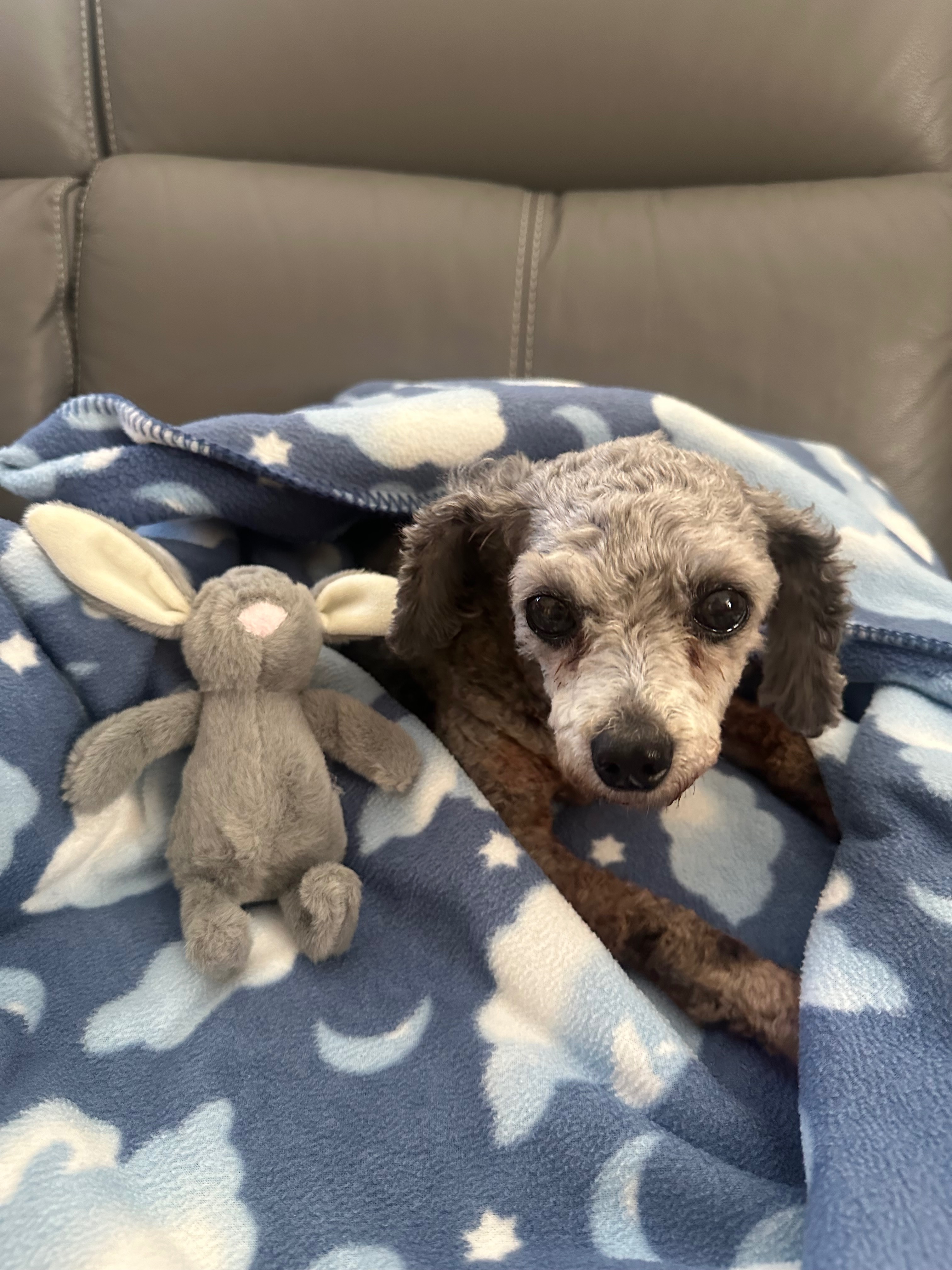 Lucky came into our lives unexpectedly, found as a runaway on my neighbor’s driveway. Her previous owner, facing an extremely tough financial situation, asked us to take her in and give her the care she desperately needs. From the moment we met Lucky, we could see she was in pain - many of her teeth are rotten, she suffers from allergies that require regular shots, and her back knees are in such bad shape that she needs surgery. Despite all of this, Lucky’s spirit shines through, and she’s shown us so much love and resilience.