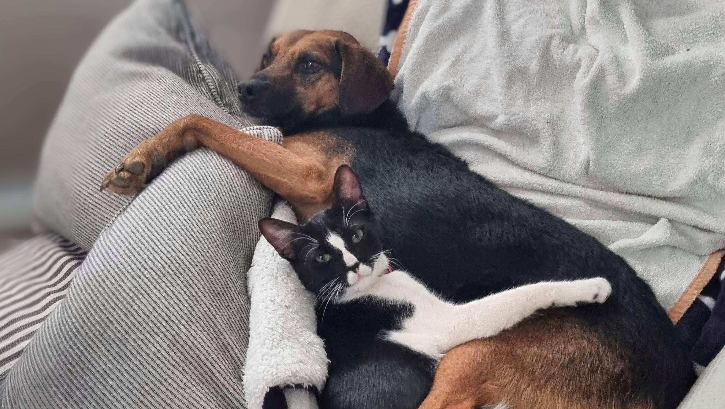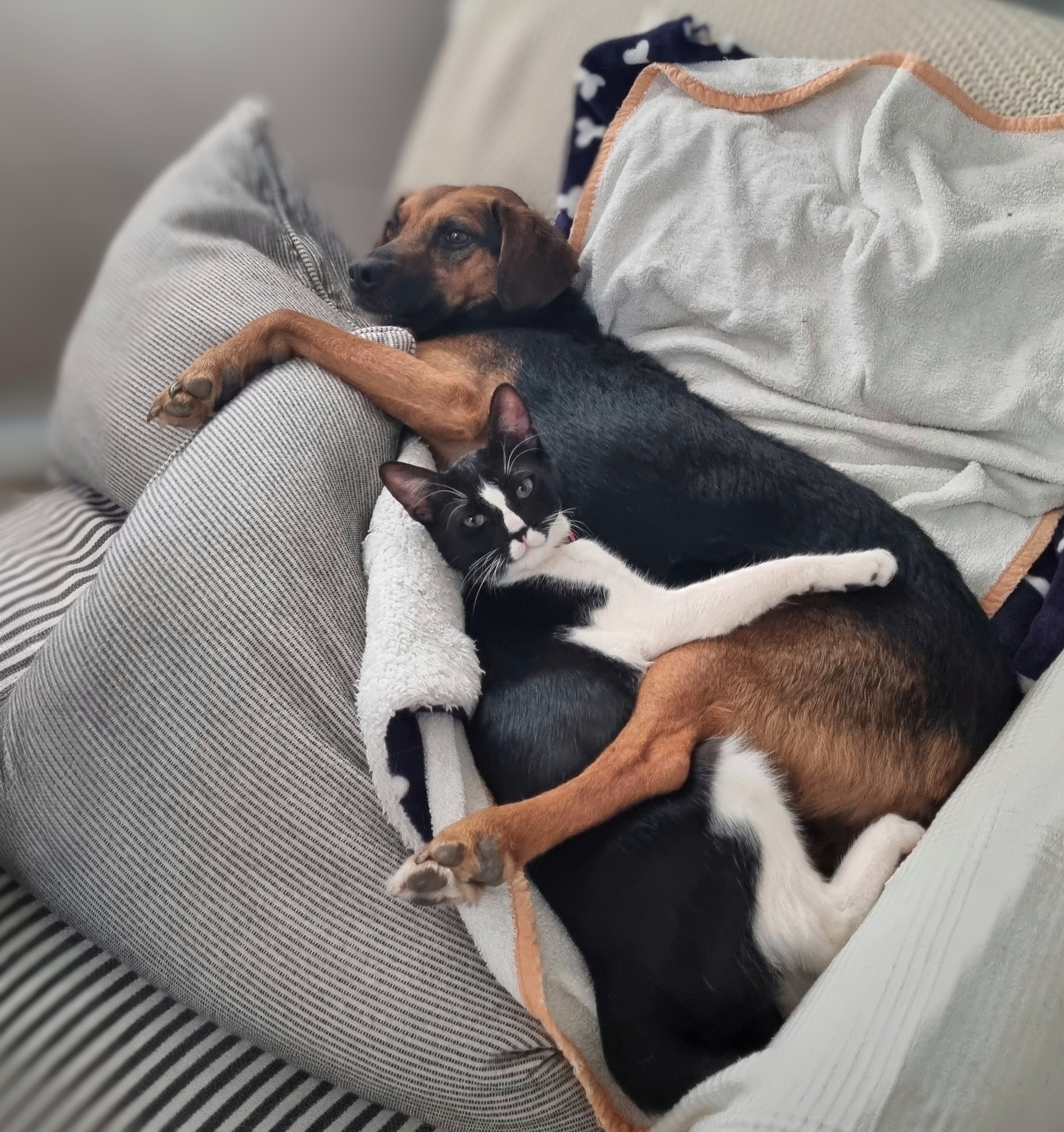 Eco with Serafino ( who was left at our door on a winter day - he immediately snuggled up to Eco and still seeks him out for afternoon snoozes?