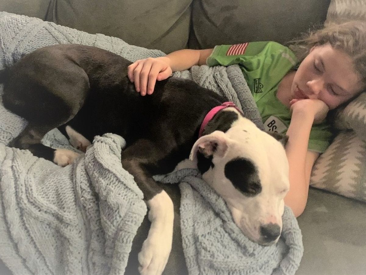 At 5-months old, Lucy came to us from a local shelter. She was a recent survivor of parvo, and small for her age. Lucy had been found crated in an abandoned house, all alone. She needed us. At that time, we were in the middle of some family upheaval and we needed Lucy, too!  She was the perfect addition to our little family - we bonded with her quickly, and she made so many things better. Fast forward several years and everyone is doing great!  Lucy has 4 kids to love on and be cuddled by.