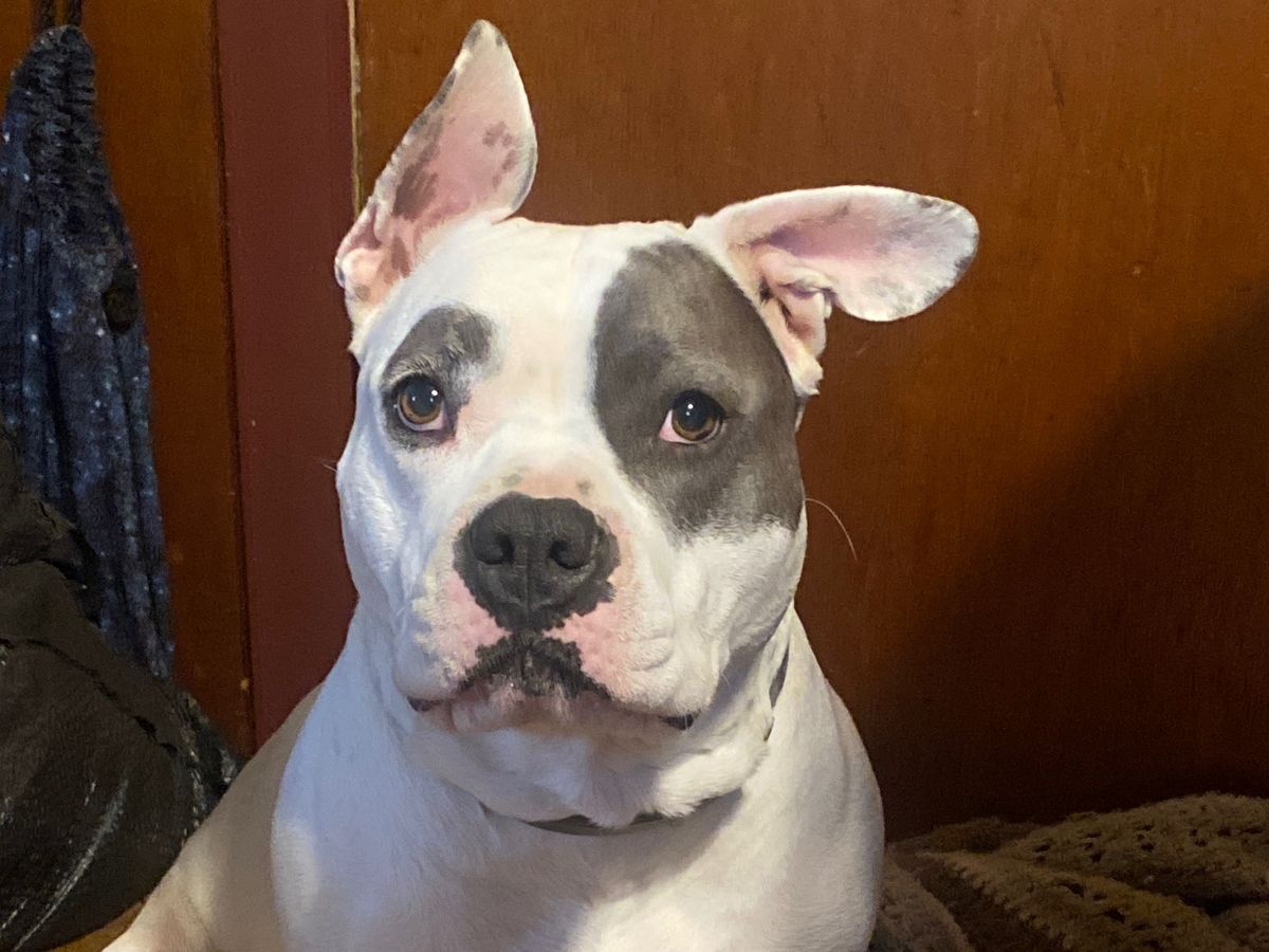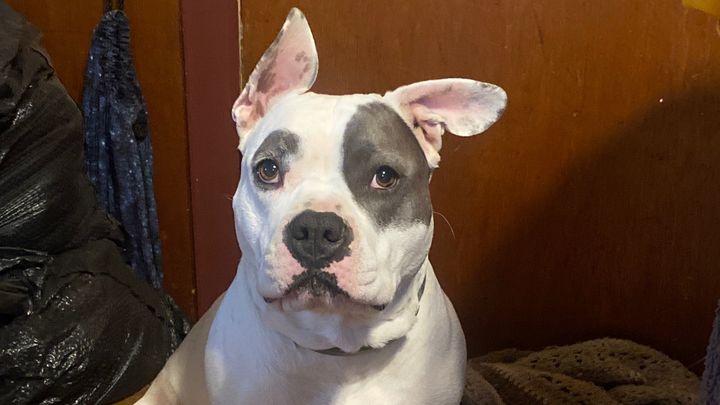 Lucy is a 3 ½-year-old American Bully with the biggest heart. Dressing up for Halloween she loves! She absolutely loves going to obedience and agility classes, where she thrives on learning new things and quickly excelled at her agility classes. Something she is no longer able to do because of her injury. She’s also incredibly bonded with her sister Smokey, and it breaks my heart to see her unable to play like with her like she used to.